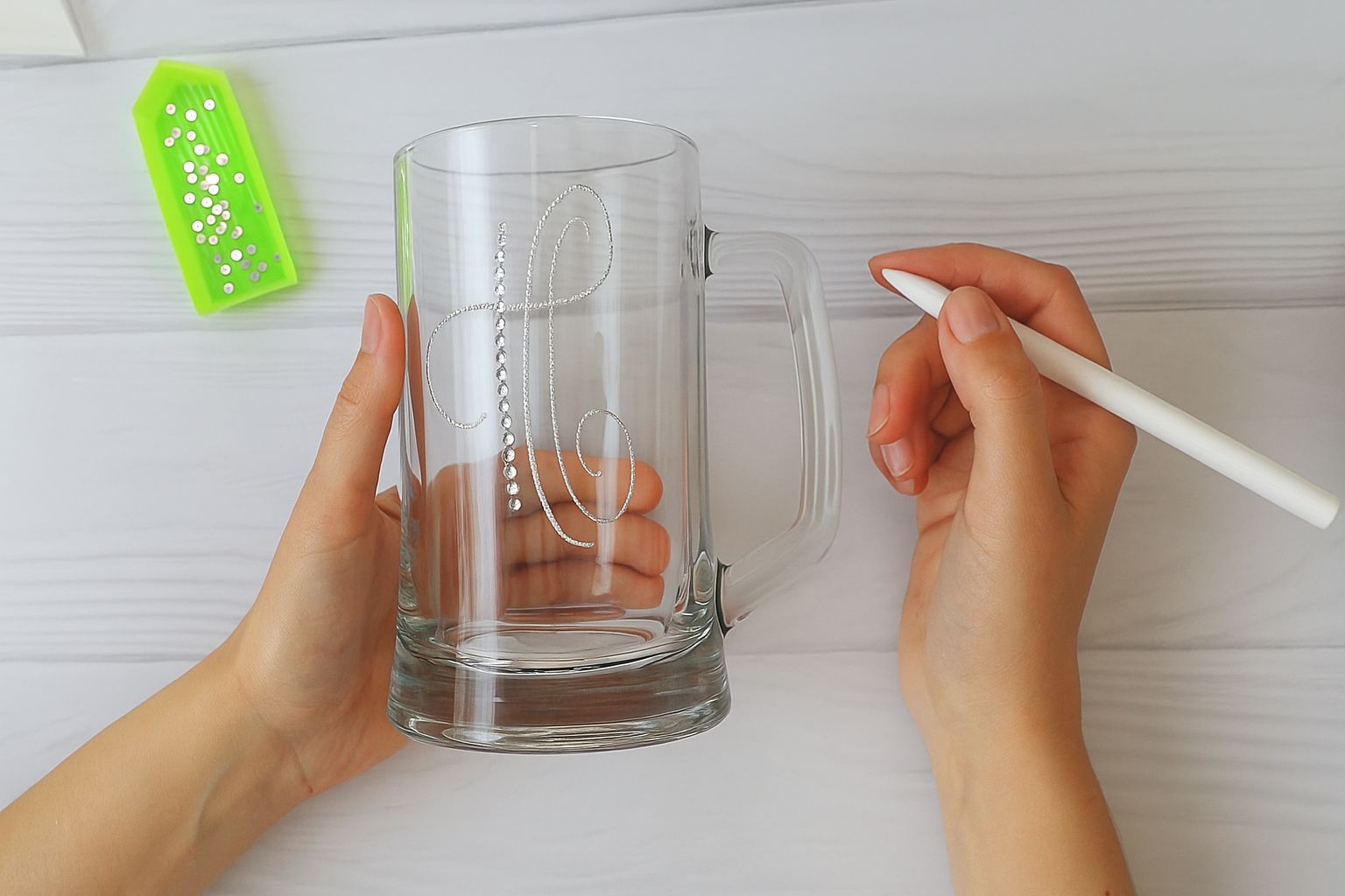 Украсьте ножку бокала кристаллами, блестками, лентами или бусинами. Этот вариант особенно эффектен для: