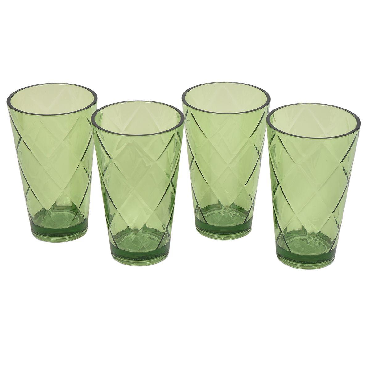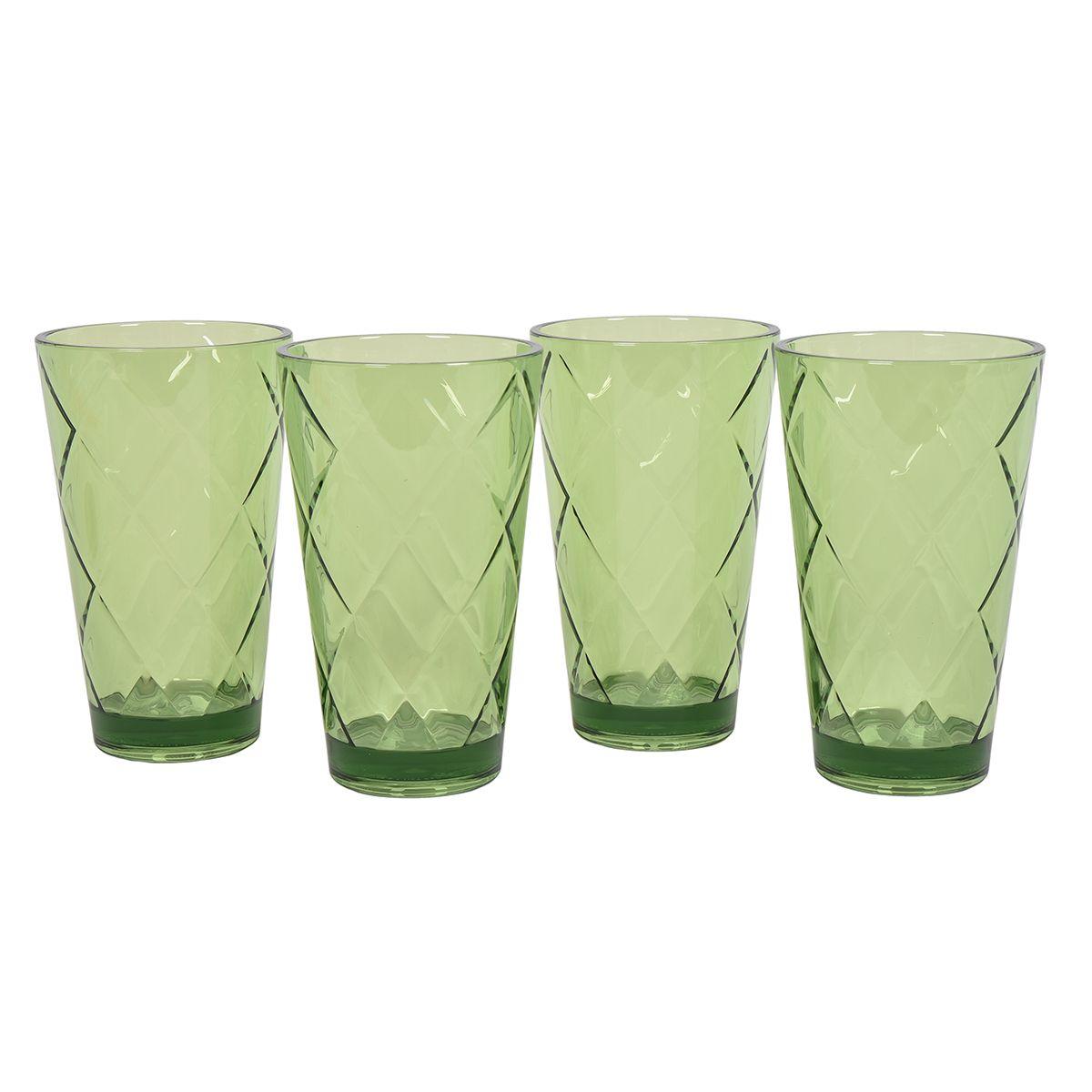Высокие стаканы для прохладительных напитков из коллекции «Алмазные грани» прекрасно подходят для дачи, пригодятся во время отдыха на природе, на пляже или в лесу. Красивый зеленый бутылочный оттенок изделий и утонченная огранка в виде ромбов делает их практически неотличимыми от стеклянных стаканов.Акрил, из которого выполнены стаканы, высокого качества, что подтверждают соответствующие сертификаты. Они легкие, удобные, практичные, прочные и плотные. Когда случайно падают не разбиваются на множество осколков, как стеклянные. Поэтому их часто используют на детских праздниках. Стаканы гармонично смотрятся с кувшином из зеленого акрила и другой посудой из этой же коллекции.
