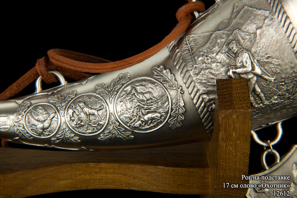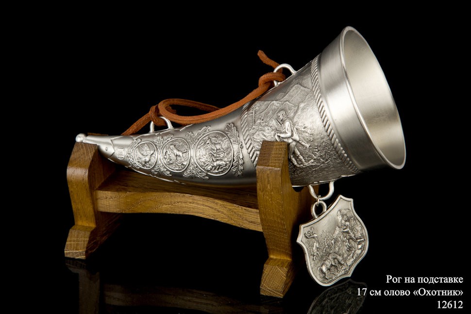 Рог для напитков оловянный на деревянной подставке Artina 300 мл
