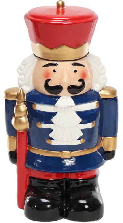 Керамическая новогодняя банка "Щелкунчик" для печенья и конфет - коллекция яркой рождественской посуды "Сладкий Новый Год". Банка под новогоднюю ёлку "Щелкунчик" оставит самые яркие впечатления от праздника и обязательно обратит внимание детей и взрослых. Объем емкости 1.5л. Оригинальная и необычная форма - выполнена в виде ярко наряженного Щелкунчика. Размер: 17.5х12см, высота 32см. Цвет: красный.