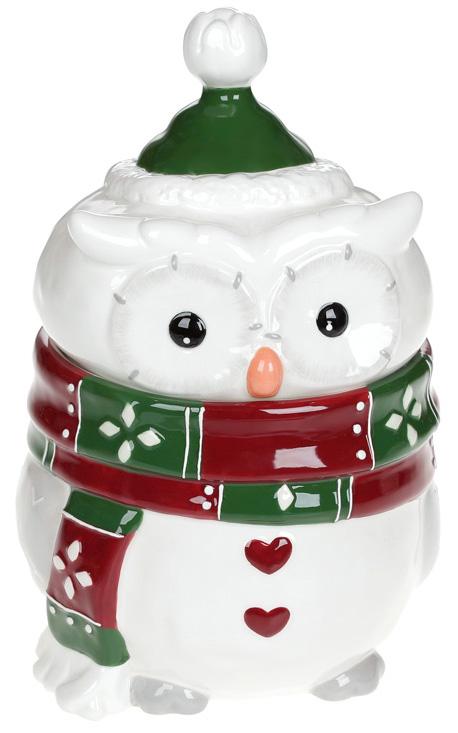 Рождественская банка для сыпучих керамическа "Новогодняя сова" 1100 мл