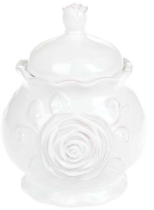 Банку з чарівної серії керамічного посуду Аеліта. Об'єм 1.2л. Біла кераміка з ненав'язливим ніжним декором – пелюстки троянд. Куполоподібна кришка з пером у формі бутона троянди. Ошатний керамічний посуд для затишної та розкішної кухні.