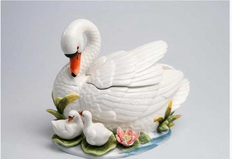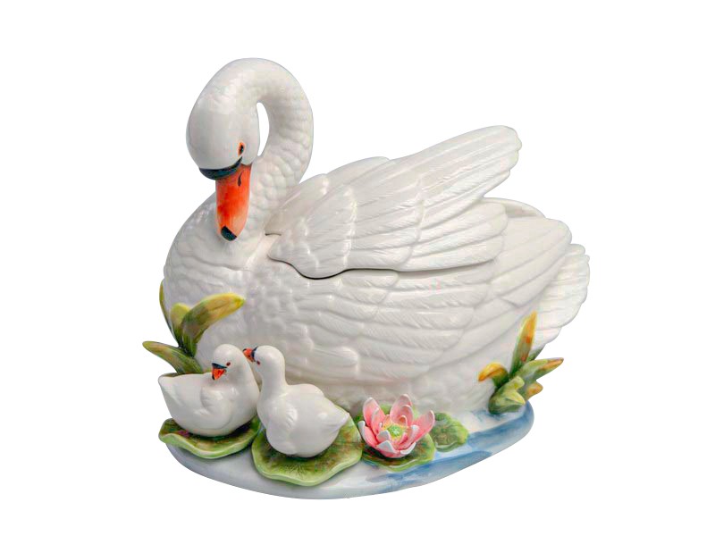 Керамическая банка в оригинальном исполнении лебедя украсит любой празжничный стол.В нет можно подать как горячее так и закуски (Кутя, вареники) а также для медя и сахара