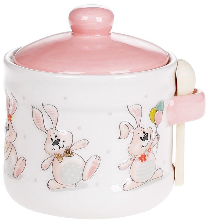 Банка керамическая с деревянной ложкой "Joyful Bunny"