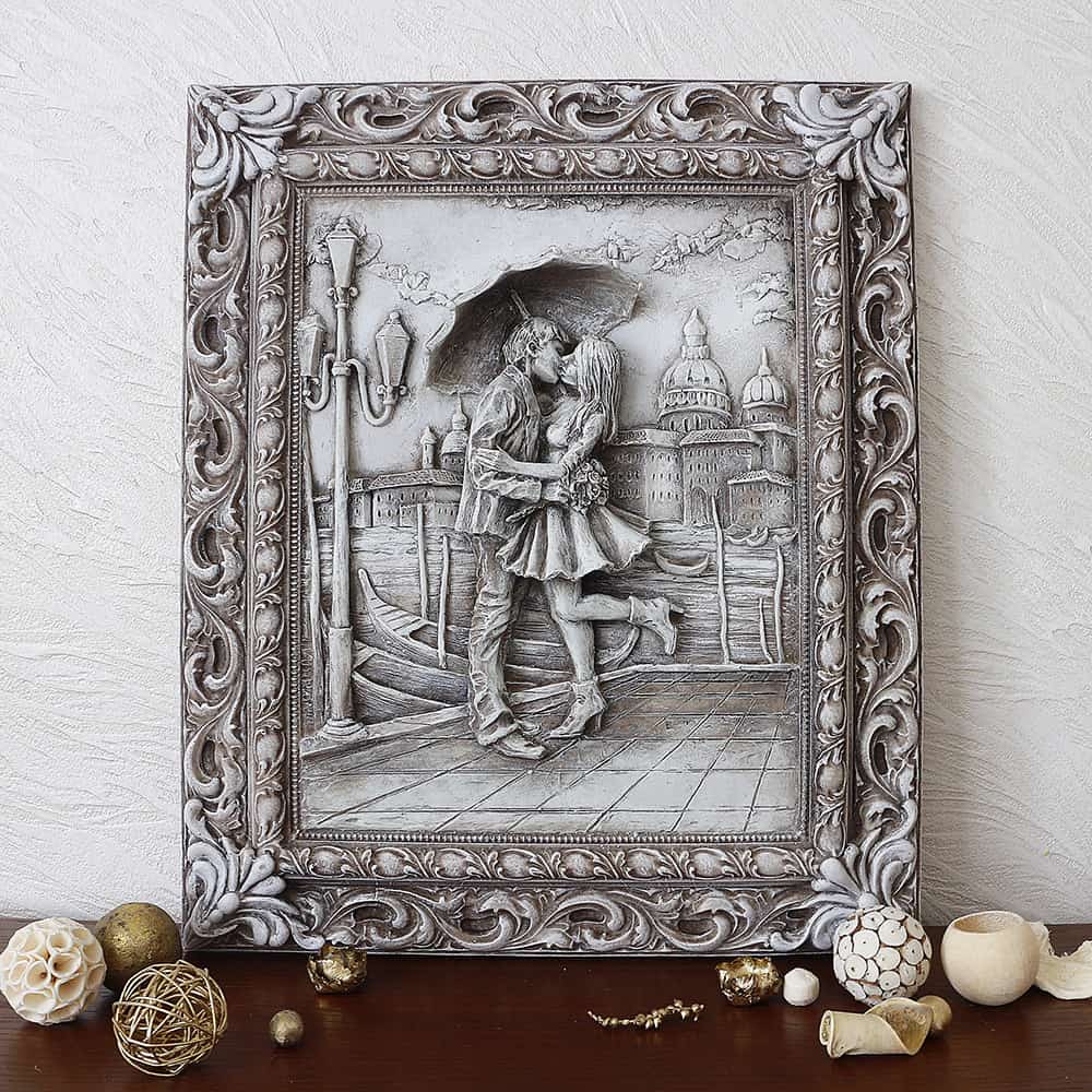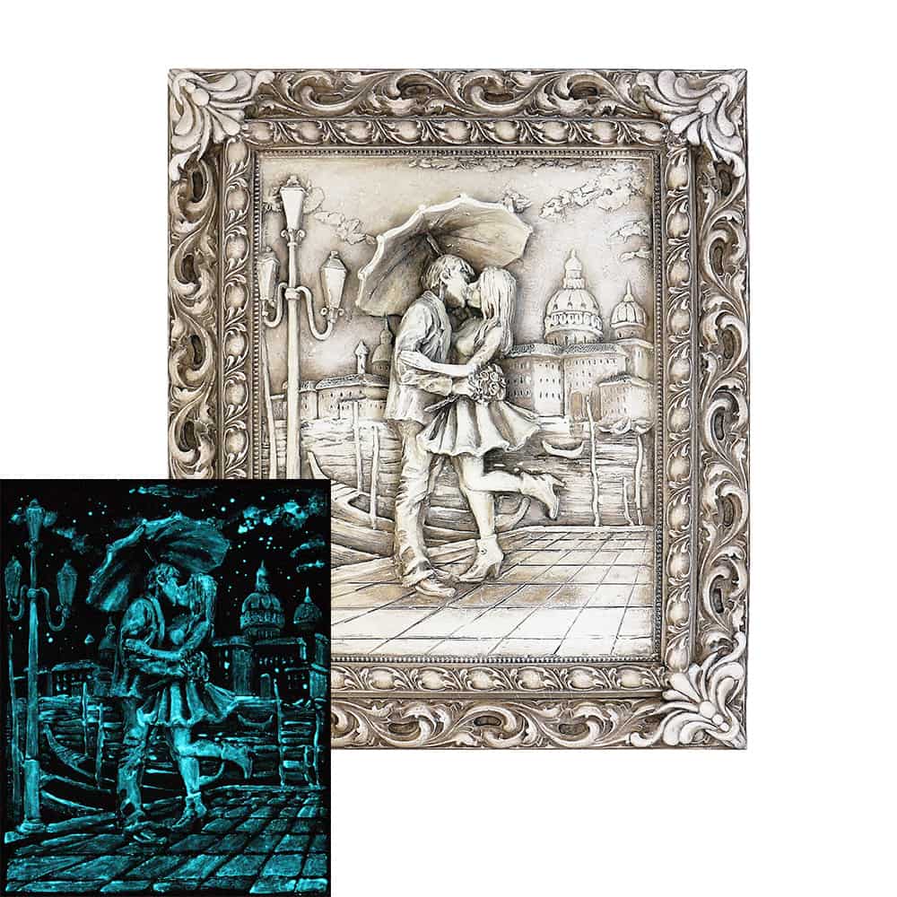 Барельеф светящийся "Пара под зонтом" 52х62 см