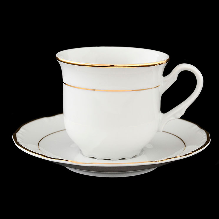 Белый набор чашек для кофе Thun с золотым кантом, 160 мл, 12 шт.