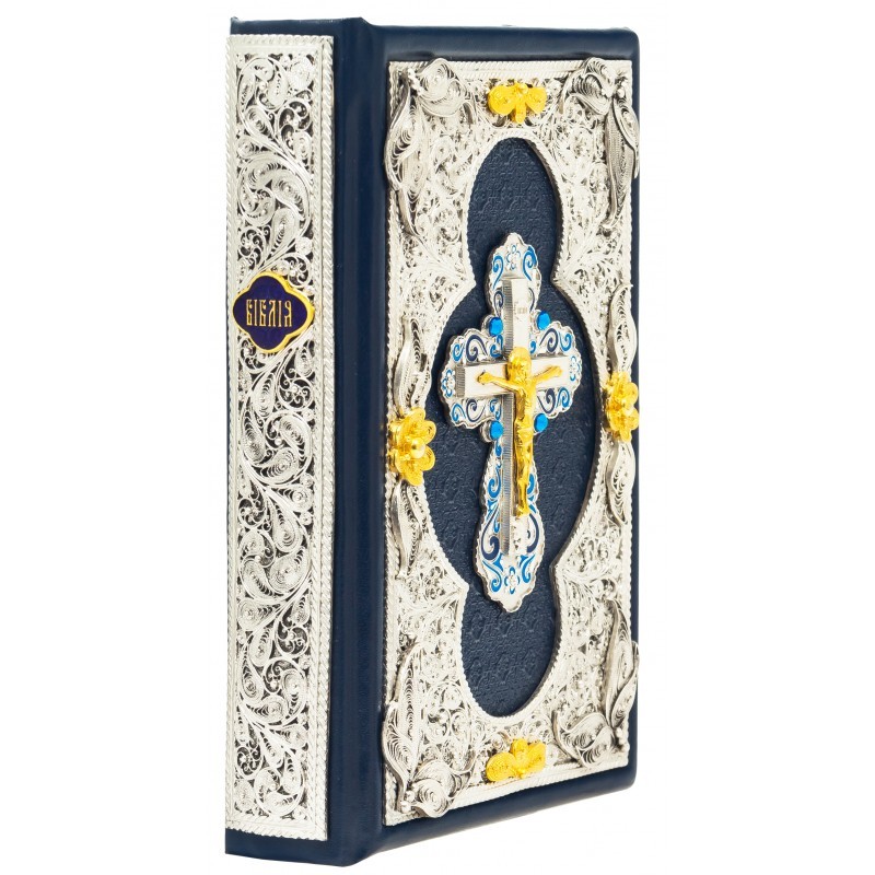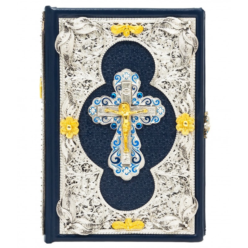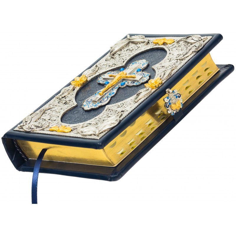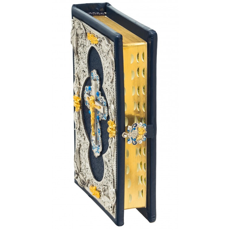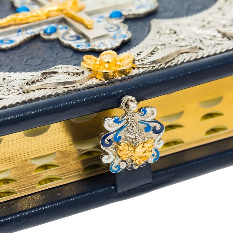 Данная подарочная книга оформлена в переплет из натуральной высококачественной кожи ручной работы. Вся книга украшена красивыми медными накладками, которые покрыты серебром и золотом, а также, по всему периметру, книга украшена качественными стразами. На книге имеются декорации художественной ювелирной эмалью. С боковой части книги есть золотой срез.