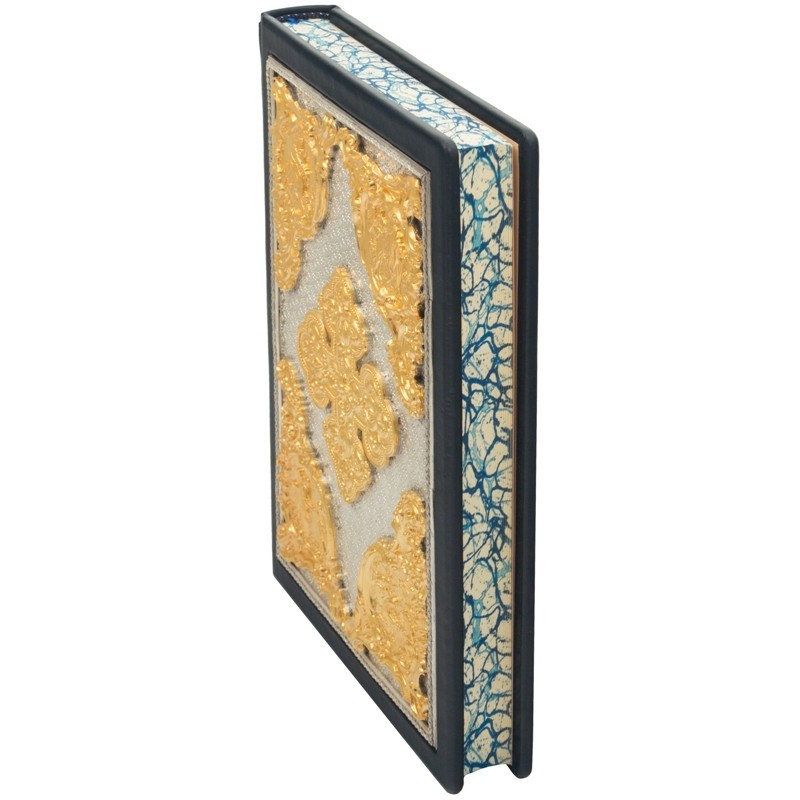 Дана подарункова книга оформлена в палітурку з натуральної високоякісної шкіри ручної роботи. Вся книга прикрашена гарними мідними накладками, які вкриті сріблом та золотом. На книзі є прикраси художньої ювелірної емаллю. З бокової частини книги є кольоровий зріз.