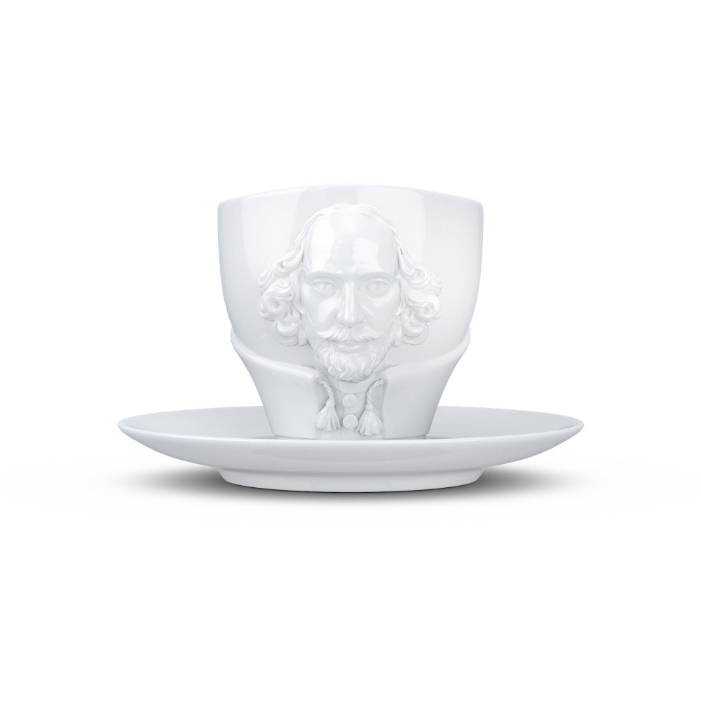 Эксклюзивная чашка William Shakespeare от немецкого бренда 58Products имеет оригинальный дизайн. Ее украшает 3D-изображение портрета Уильяма Шекспира – графичное, с четкими контурами, на нем хорошо видны черты лица поэта. Чашка сделана из прочного белого фарфора. Ее можно нагревать в микроволновой печи и мыть в посудомоечной машине. Объем чашки – 260 мл. В комплект входит блюдце. Набор продается в брендированной упаковке 58Products.