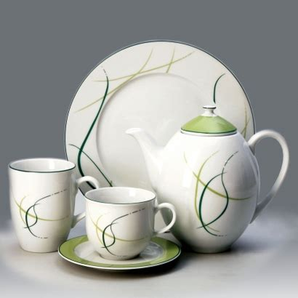 Кольорова порцелянова кружка Thun Opal об’ємом 370 мл — це чудовий вибір для тих, хто цінує зручність, стриманий стиль і практичність у щоденному посуді. Біла основа прикрашена лінійним візерунком у зелених і сірих тонах, що нагадує легку траву на вітрі. Такий декор додає свіжості й гармонійно виглядає у будь-якому інтер’єрі.