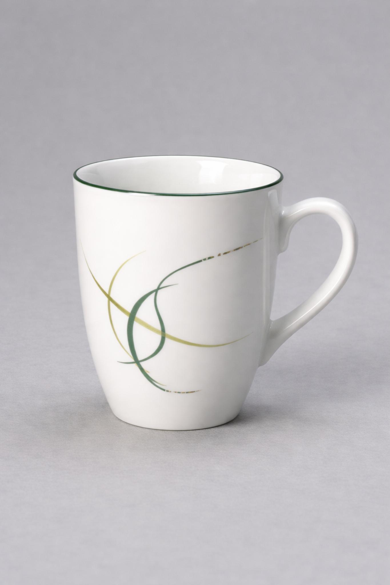 Біла порцелянова чашка Thun Opal із зеленим кантом 370 мл