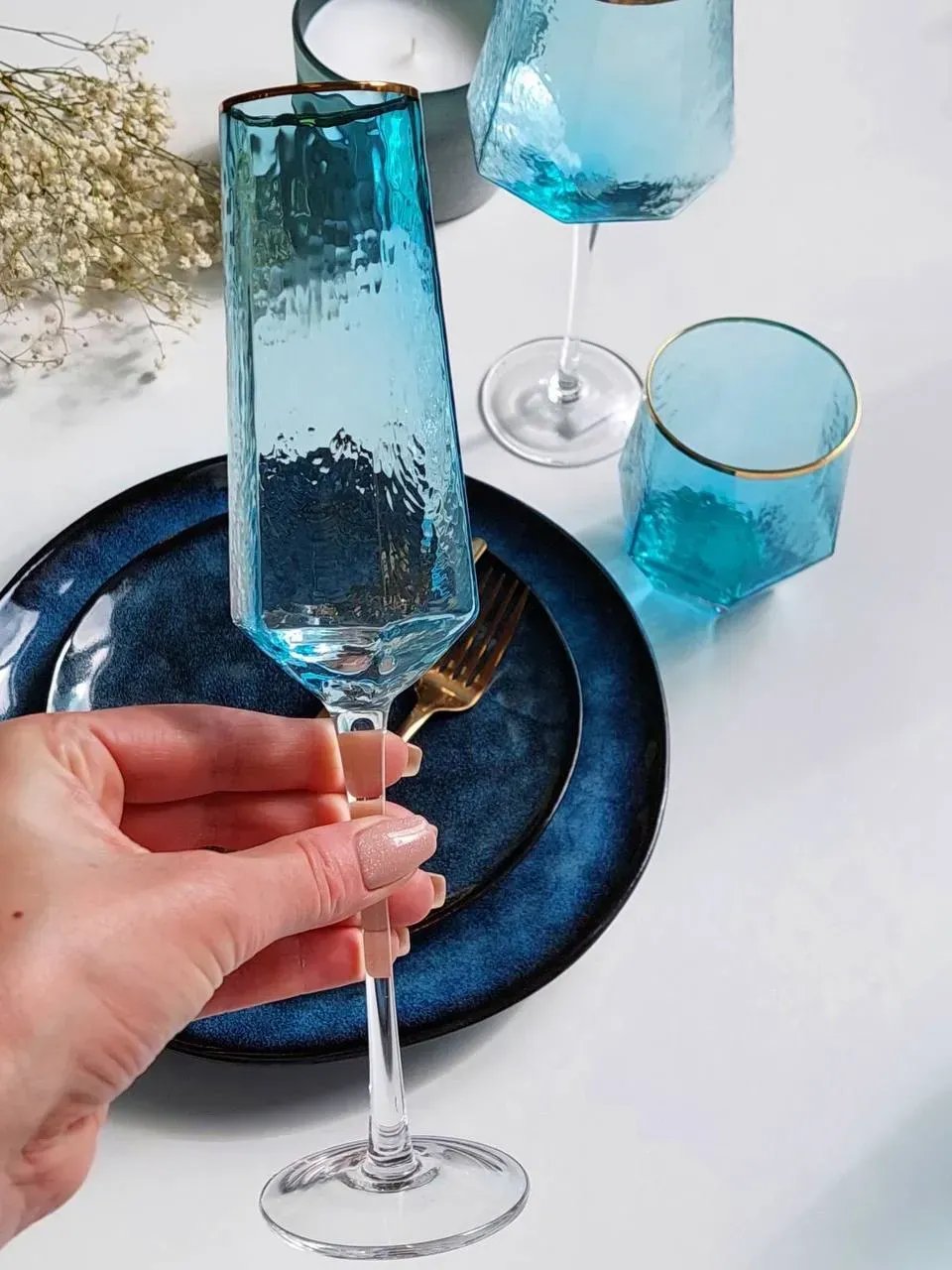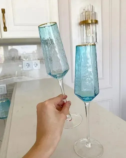 Бокал для шампанского "Бриллиант" 180 мл — высокий и изящный, с вытянутой геометрической чашей. Он идеально подойдёт для утреннего бранча, вечернего тоста или праздничного ужина. Лёгкий перелив бирюзового стекла в сочетании с изящной ножкой делает этот бокал эстетически безупречным.