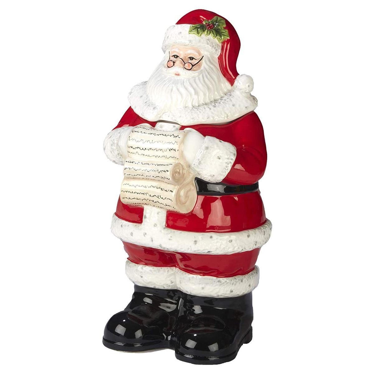 Керамическая емкость в виде фигурки приветливого Санта Клауса, предназначенная для хранения печенья, конфет и других мелких сладостей, станет прекрасным украшением интерьера на новогодние и рождественские праздники. Улыбчивый Санта держит в руках букет с пуансеттией в кадке с надписью Welcome home («Добро пожаловать домой»).