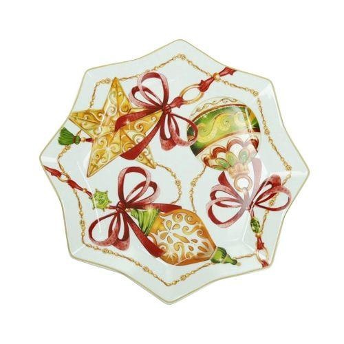 Блюдо 8-ми угольное фарфоровое новогоднее Праздничное Сияние 27 см