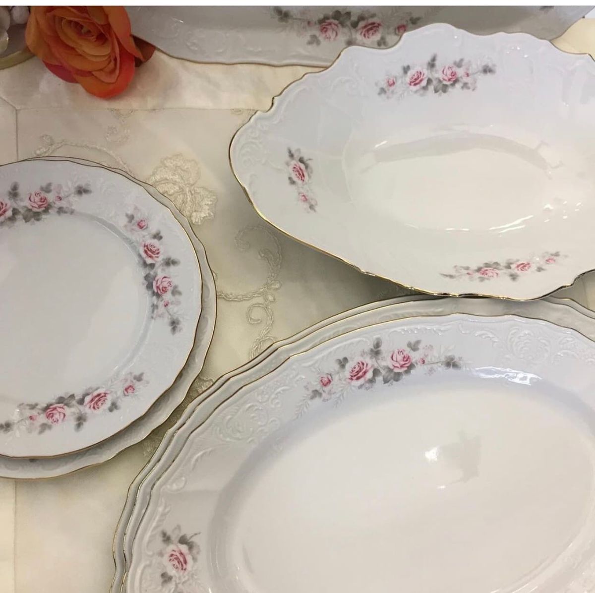 Блюдо овальное фарфор Бледная роза-золотая кайма 39 см