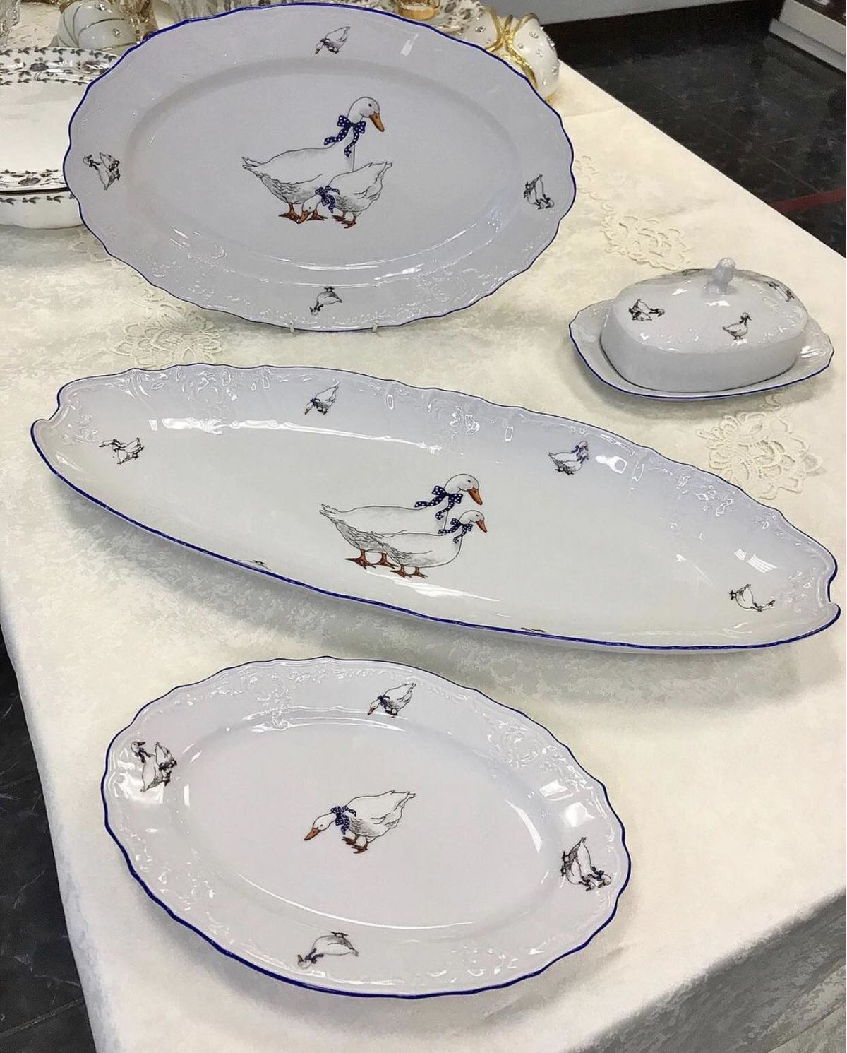 Блюдо для хлеба фарфор Чехия "Гуси" 34 см