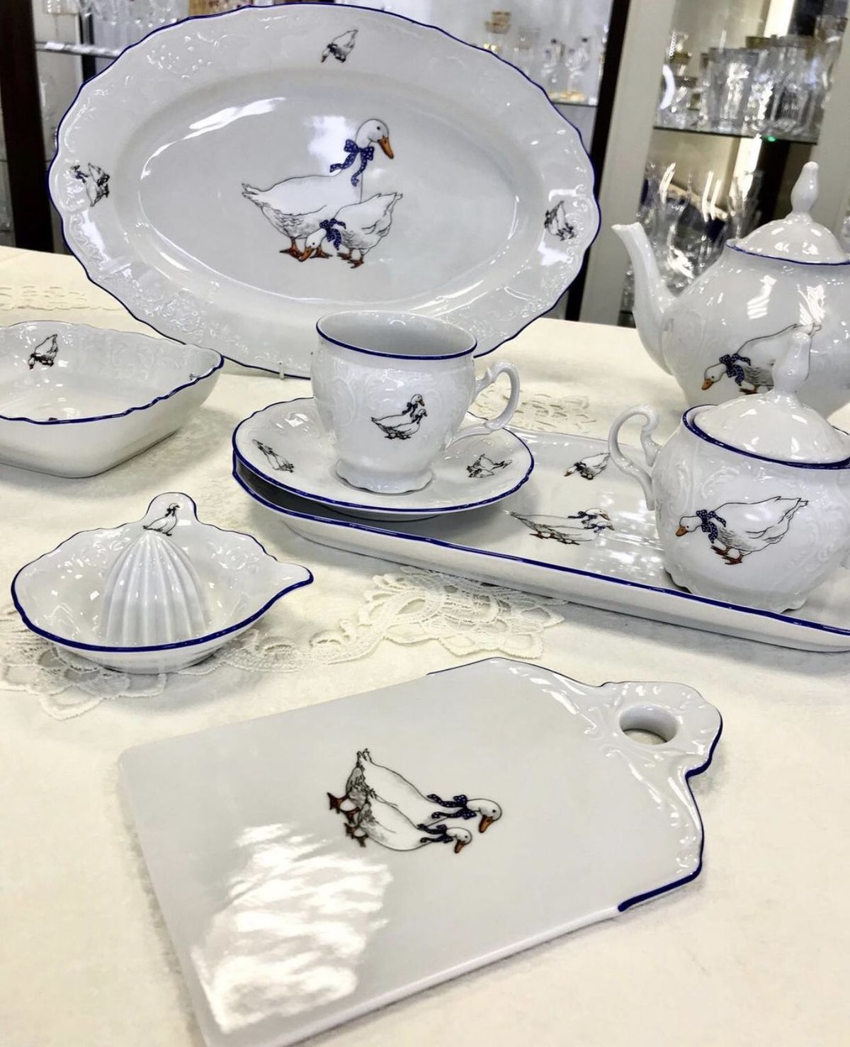 Сервизы Bernadotte отличаются изысканными, но едва заметными рельефами, которые добавляют посуде особый шик. Именно поэтому элитный фарфор этой марки можно встретить в самых престижных ресторанах и гостиницах мира. Материал: высококачественный фарфор. Фарфор белого цвета с красивым рельефным и цветным рисунком где изображены гуси создаст атмосферу праздника. Его прочная структура и устойчивость к сколам позволяет пользоваться данной посудой каждый день. Фарфор чешского производителя Thun всегда будет выглядеть на Вашем столе элегантно и в тоже время нарядно и торжественно. Высокое качество продукции «Thun» достигается многовековым опытом в производстве фарфора. Использование самых современных технологий позволяет производить изделия различных размеров и форм.