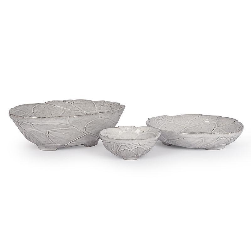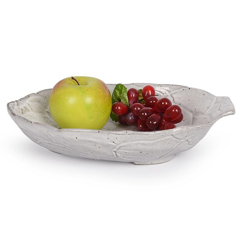 Блюдо выполнено из плотной тяжёлой майолики, сформированной вручную. Поверхность украшена выразительной текстурой и расписана в мягкой белой гамме с акцентами под винтажные потемнения и лёгкие потертости. Художественная ручная роспись придаёт каждому изделию индивидуальность, а термостойкая глянцевая глазурь защищает посуду от сколов и трещин. Блюдо можно безопасно использовать в микроволновой печи и мыть в посудомоечной машине.