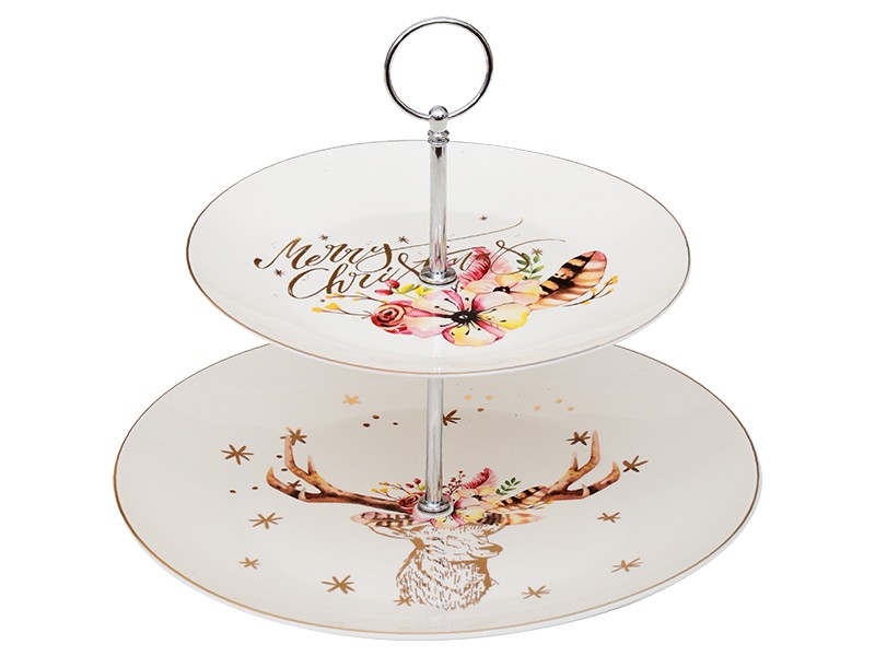 Блюдо для торта двоярусна з різдвяним оленем діаметром 25 см