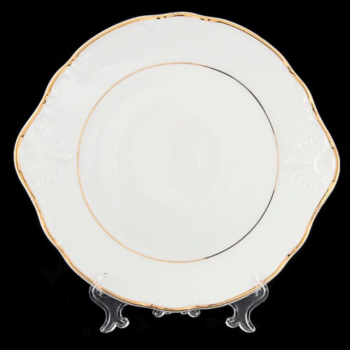Блюдо для торта фарфоровое белое с золотым декором Thun Constance Ободок Золото 27 см