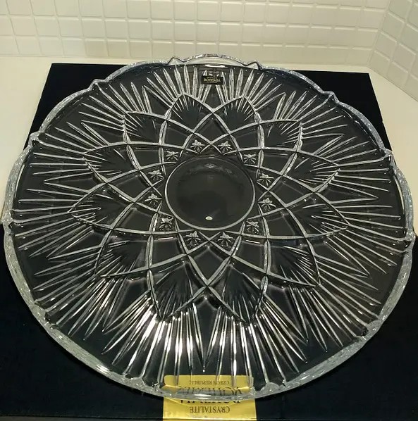 Блюдо під торт та десерти Ліра з пресованого кришталевого скла з додаванням окису титану та додатковим випалом краю. Класична форма та вишукане переплетення ліній створюють урочистий настрій. Скляний посуд, що йде на розширення у верхній частині, ідеально підходить для лілій, ірисів та нарцисів. Чарівний предмет з кришталю гармонійно доповнить інтер'єр у класичному стилі.