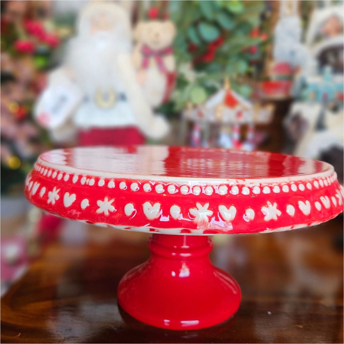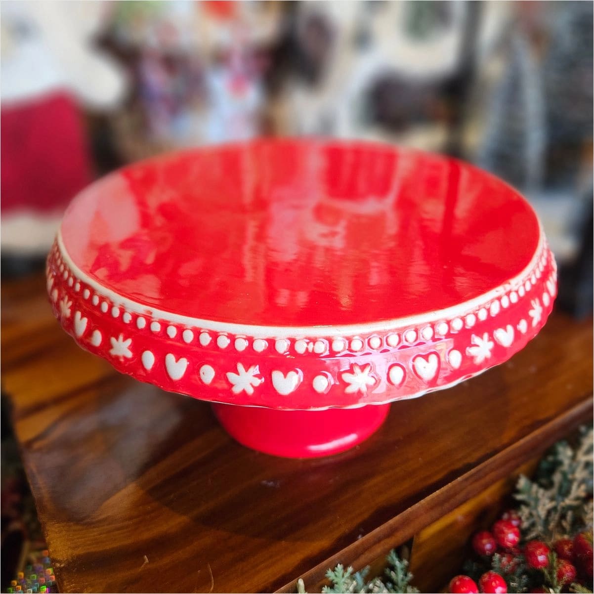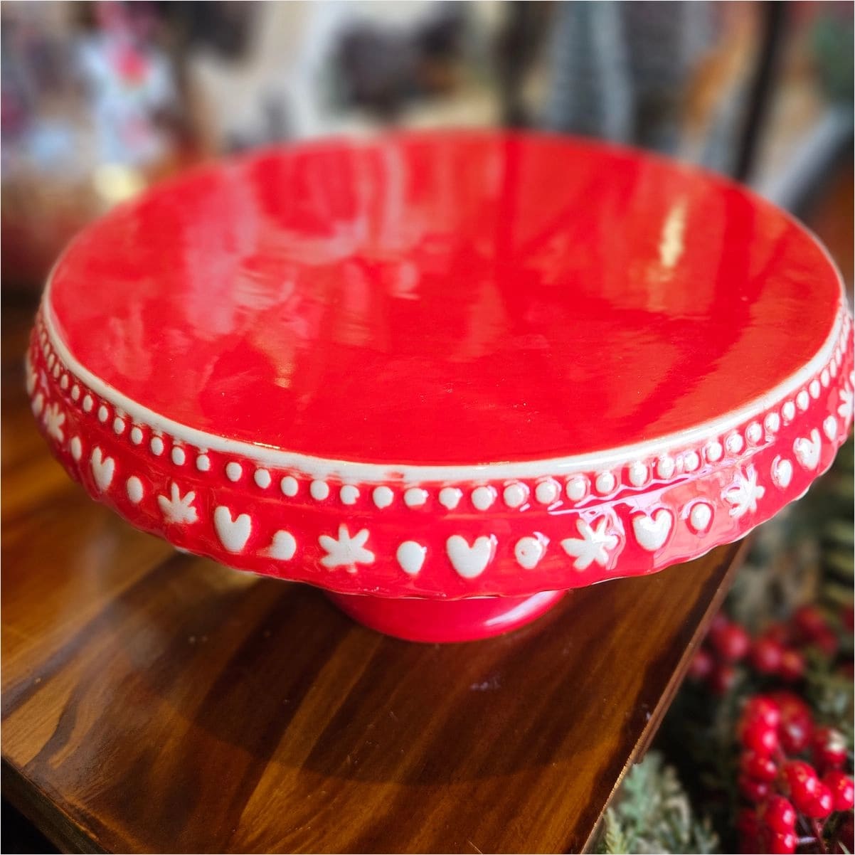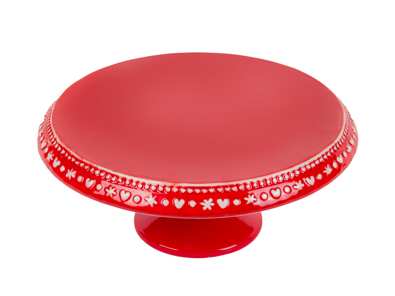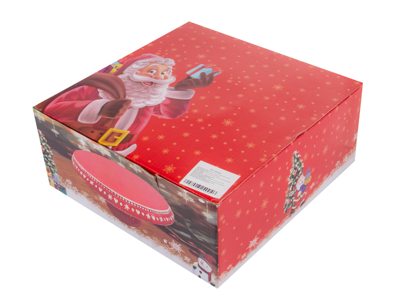 Блюдо для торта порцелянове різдвяне червоне Сніжинка 28 см