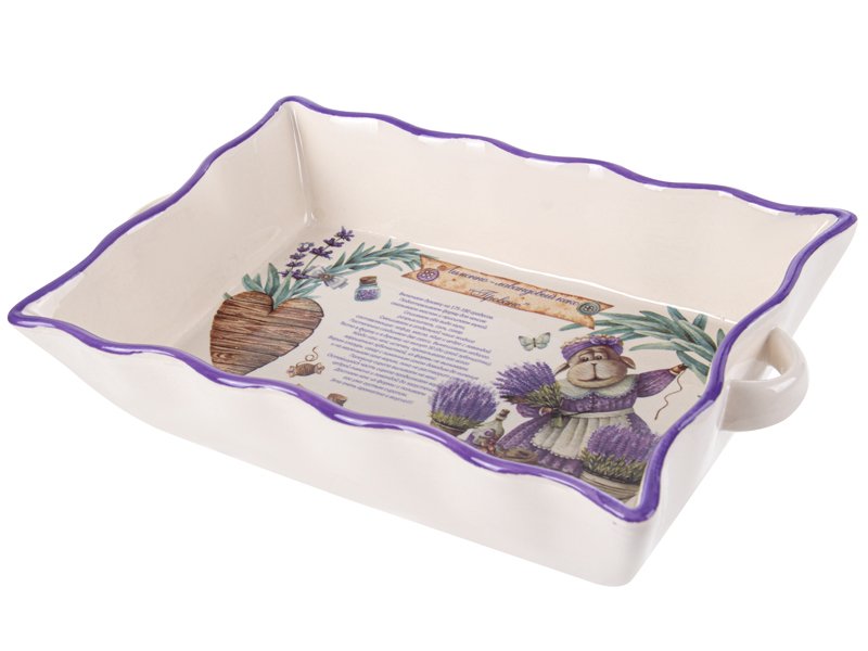 Блюдо для запекания из коллекции «Лавандовые истории» — это не просто кухонная утварь, а настоящий элемент декора, который подарит особое настроение вашему столу. Нежный кремовый фон, фиолетовая кайма и яркий рисунок с лавандой и забавным персонажем создают атмосферу уюта и провансальской изысканности. С таким блюдом приготовление любимых запеканок, овощей или десертов превращается в настоящее удовольствие.