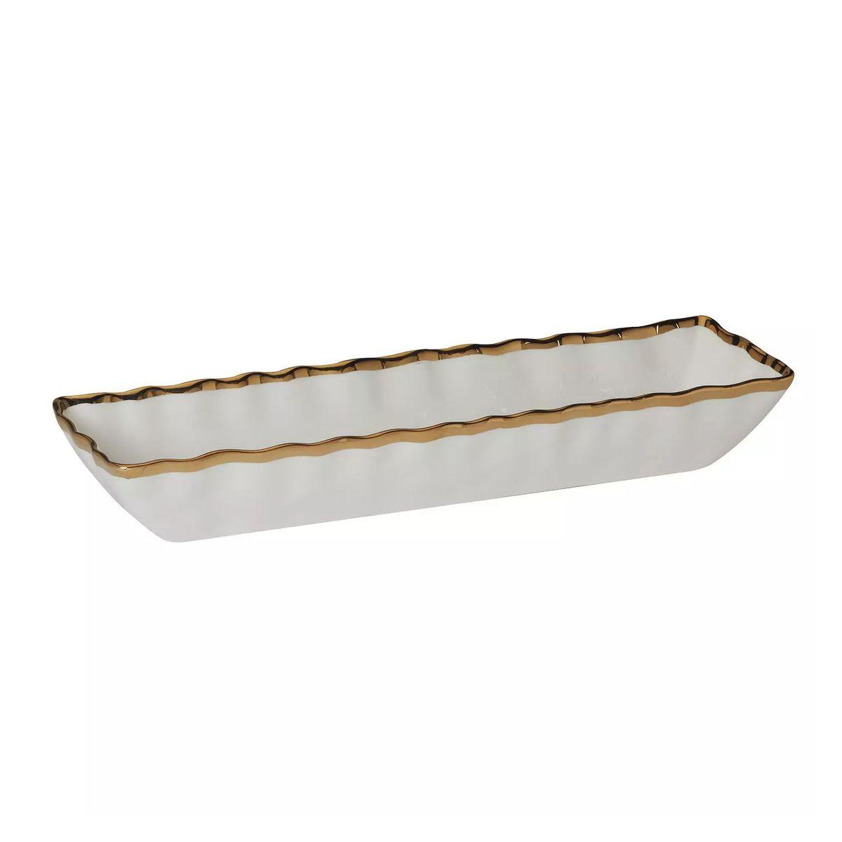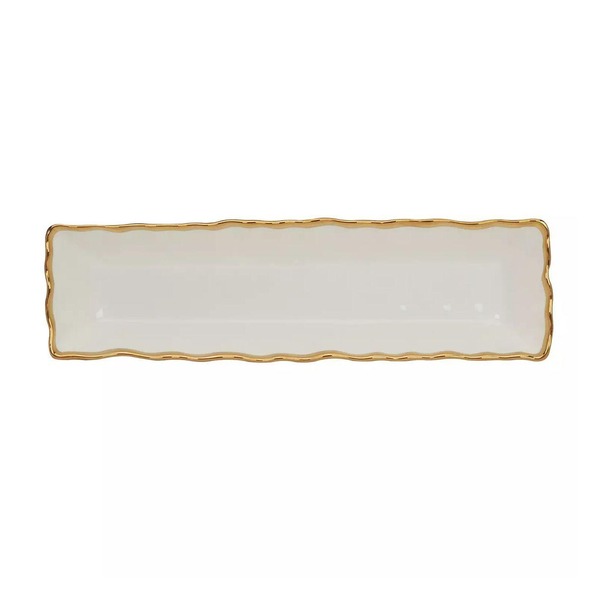 Блюдо довге глибоке керамічне з золотим кантом Regency Gold