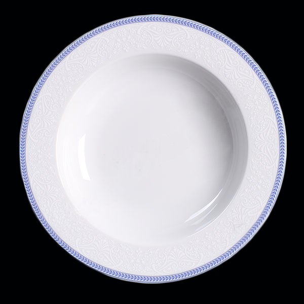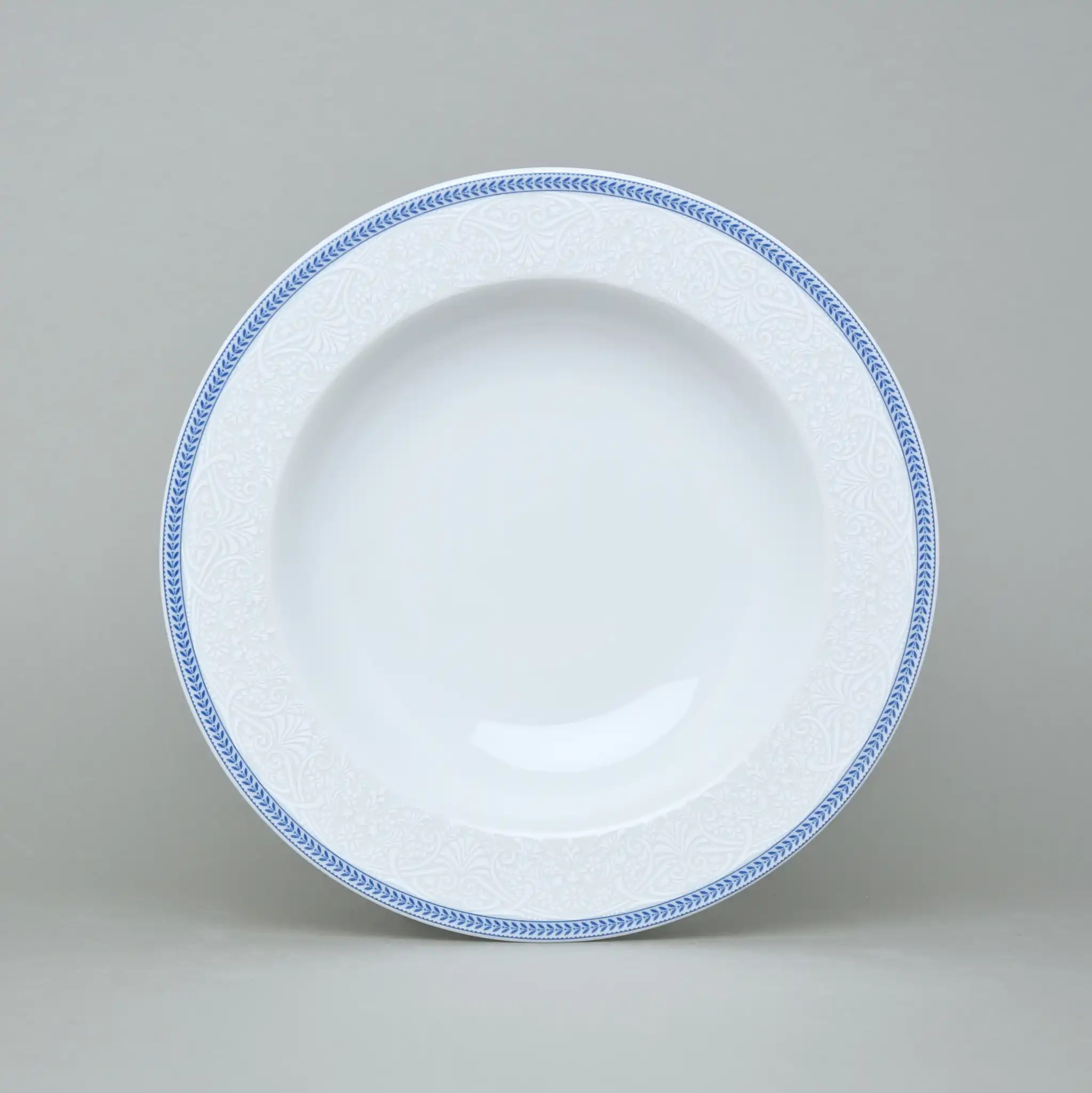 Блюдо порцелянове кругле глибоке Thun Opal Блакитні Пластинки 30 см з блакитною облямівкою
