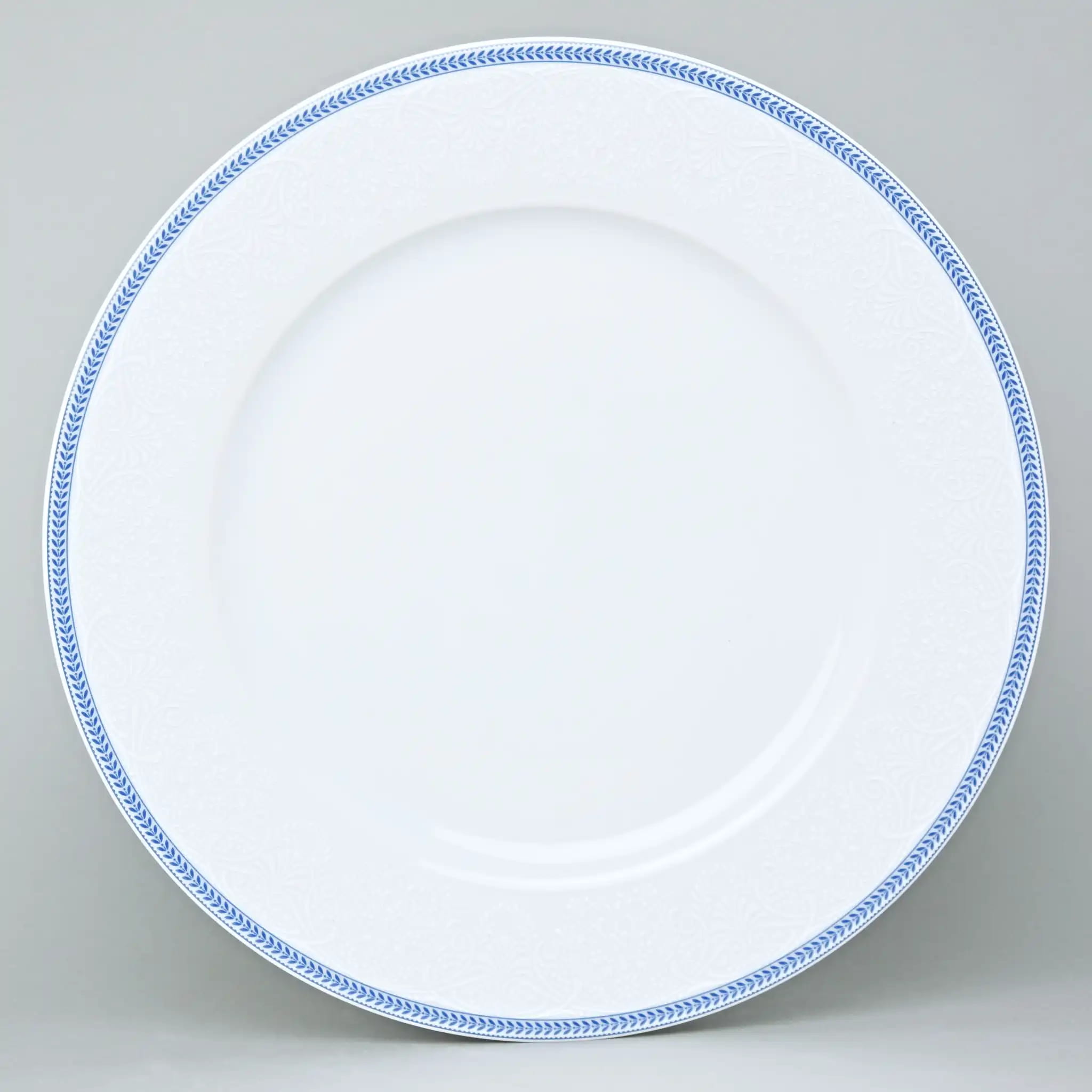 Блюдо фарфоровое круглое мелкое Thun Opal Голубые Пластинки 30 см с голубой каймой