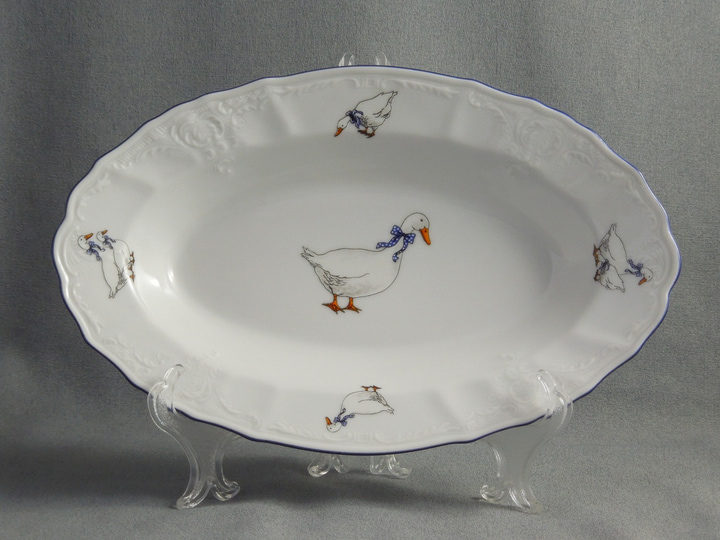 Блюдо фарфоровое овальное белое Bernadotte Гуси с темным ободком 26 см