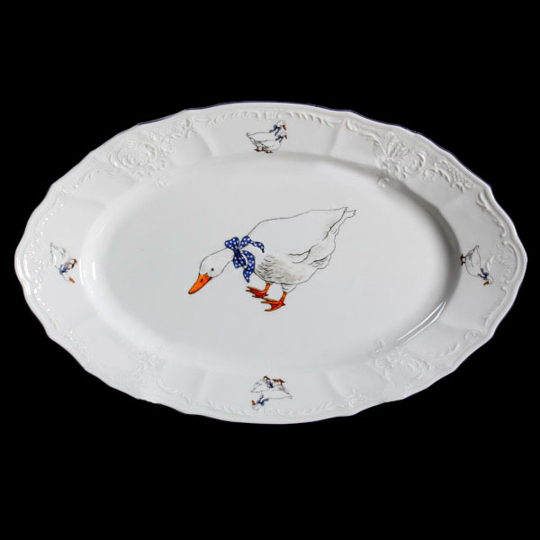 Блюдо фарфоровое овальное белое Bernadotte Гуси с темным ободком 39 см