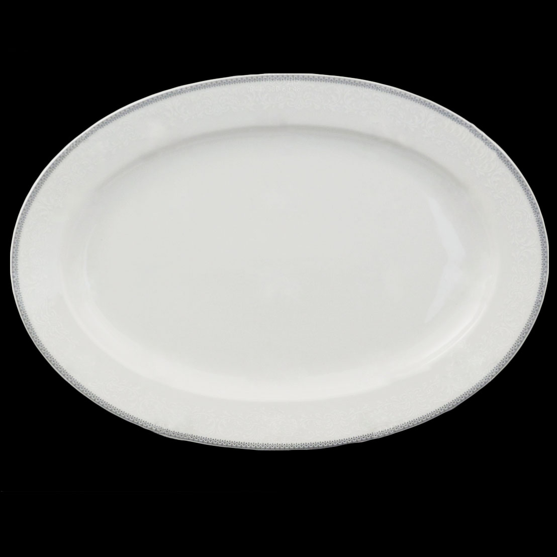 Блюдо фарфоровое овальное белое с декором Thun Opal Серые Пластинки 32 см с серой окантовкой