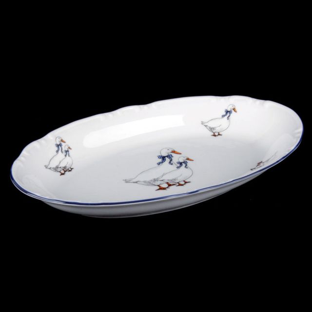 Блюдо фарфоровое овальное белое с рисунком Thun Constance Гуси 21 см с синей каймой