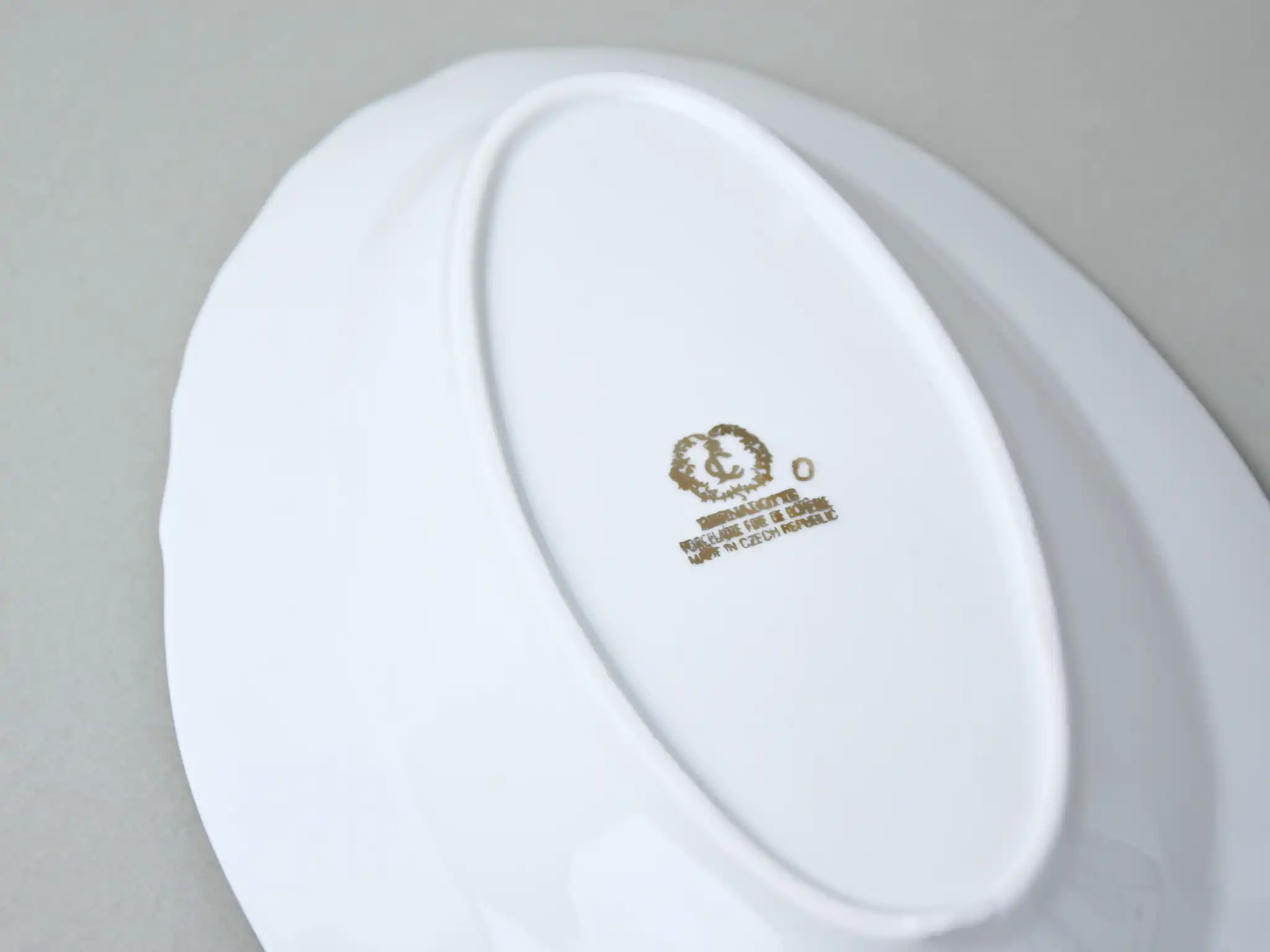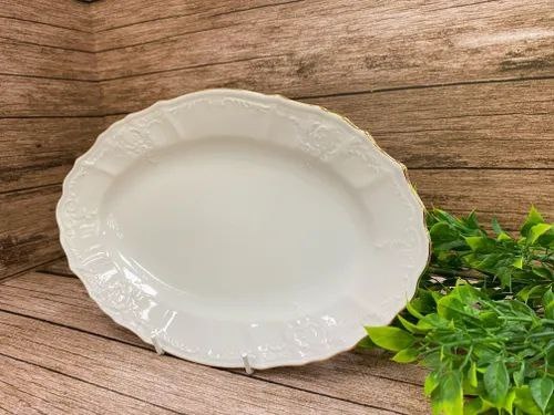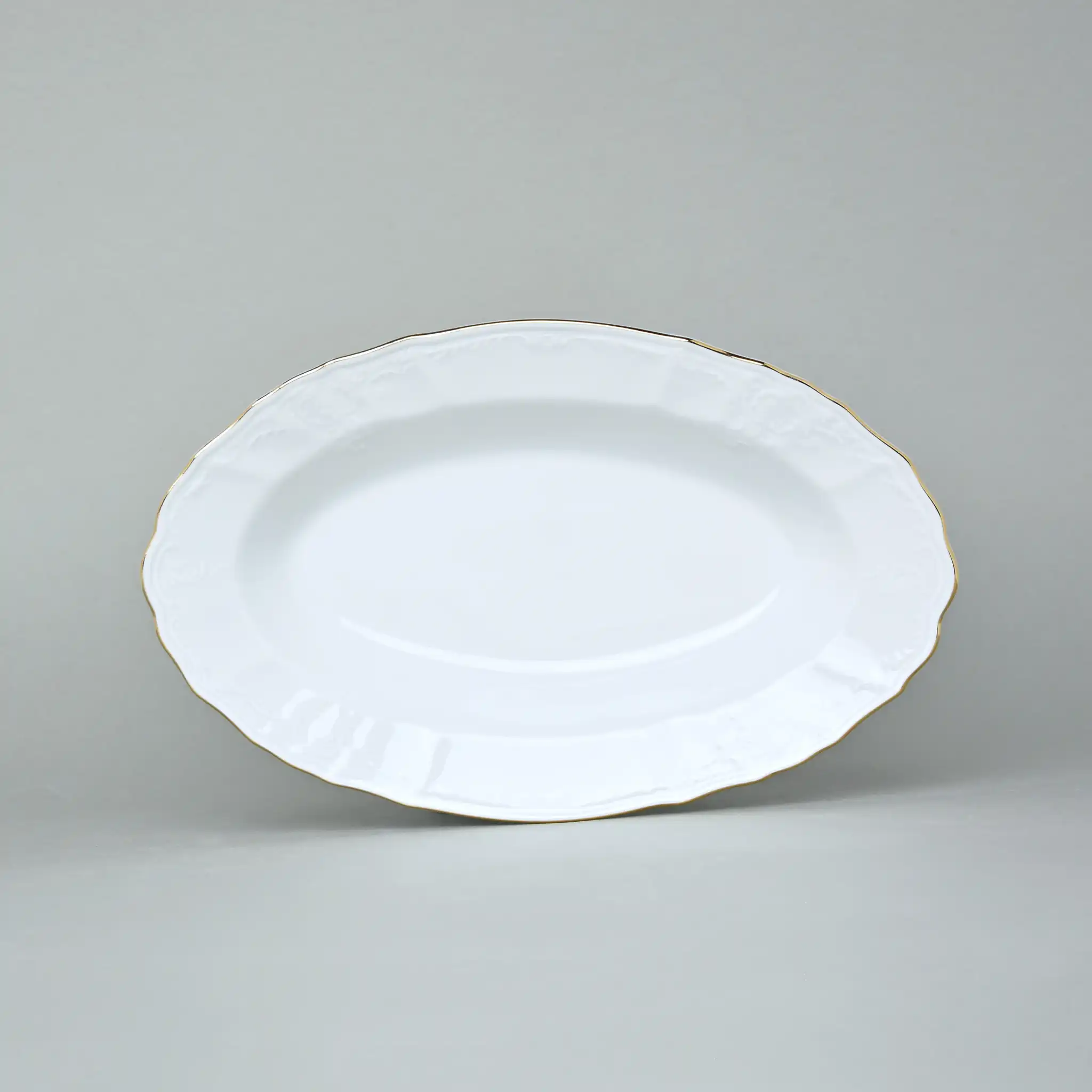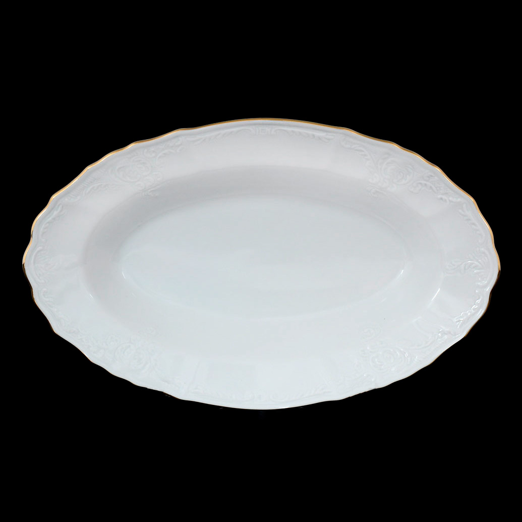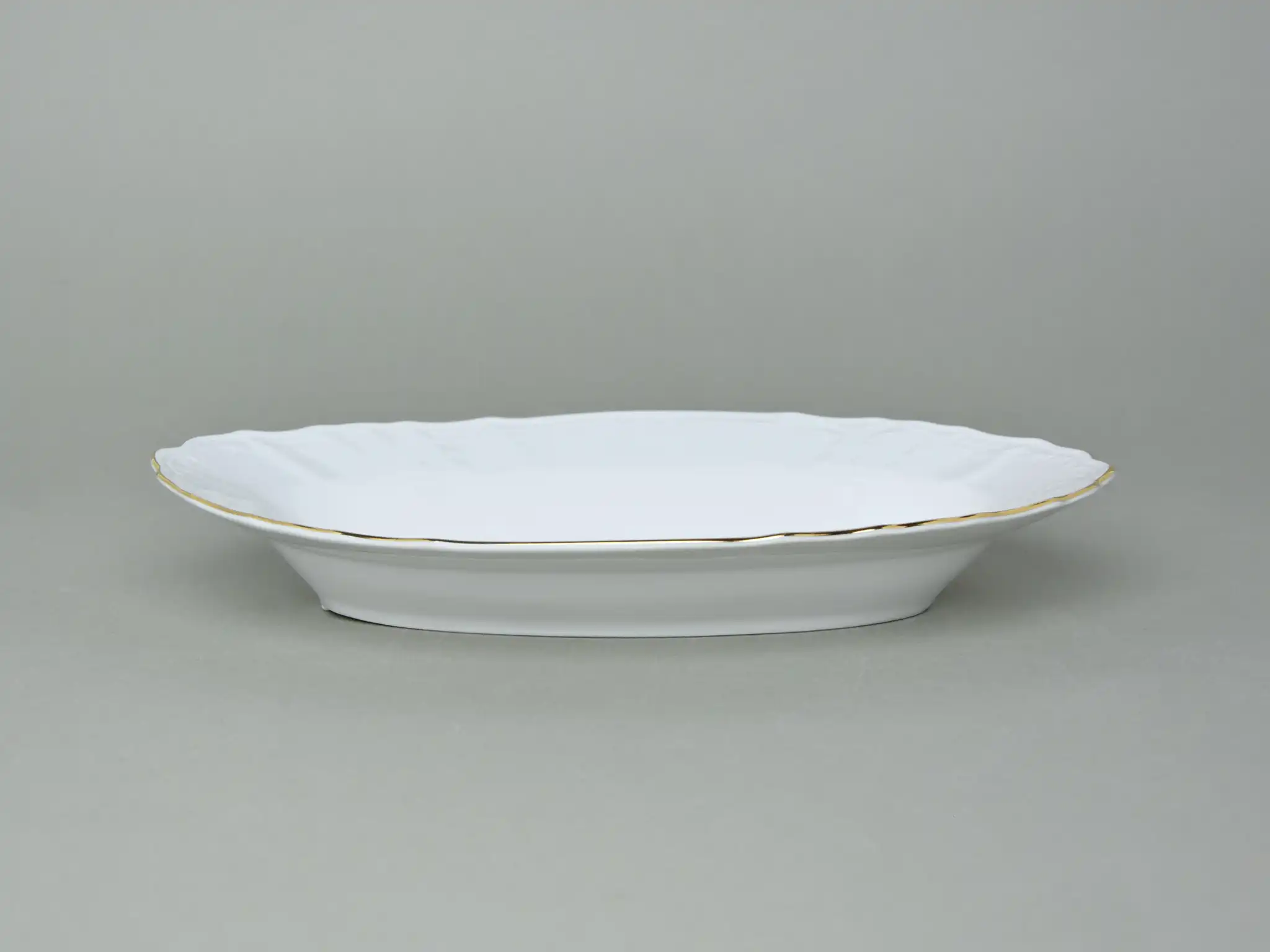 Блюдо фарфоровое овальное белое Thun Bernadotte Золотая Обводка 26 см с золотой каёмочкой