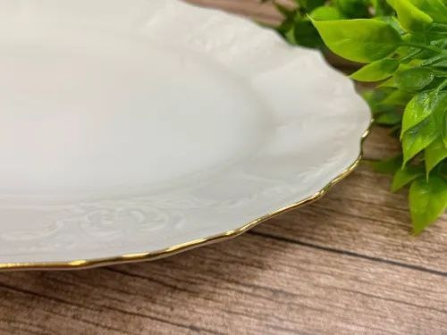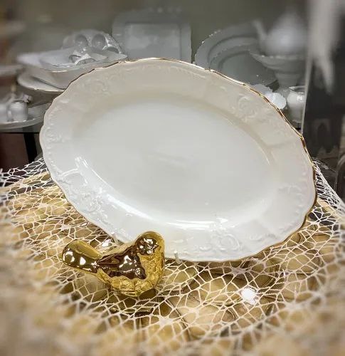 Фарфоровая классика, рожденная для королевской сервировки. Коллекция блюд Bernadotte "Золотая Обводка" — это тонкий фарфор снежного оттенка, изысканный рельеф с винтажным мотивом и утончённая золотая линия по краю, словно рукопись мастера на кромке совершенства. Эти блюда — не просто посуда, это изящество, которое делает подачу блюд настоящим искусством.