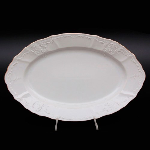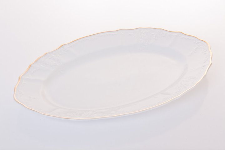 Блюдо фарфоровое овальное белое Thun Bernadotte Золотая Обводка 34 см с золотым кантом
