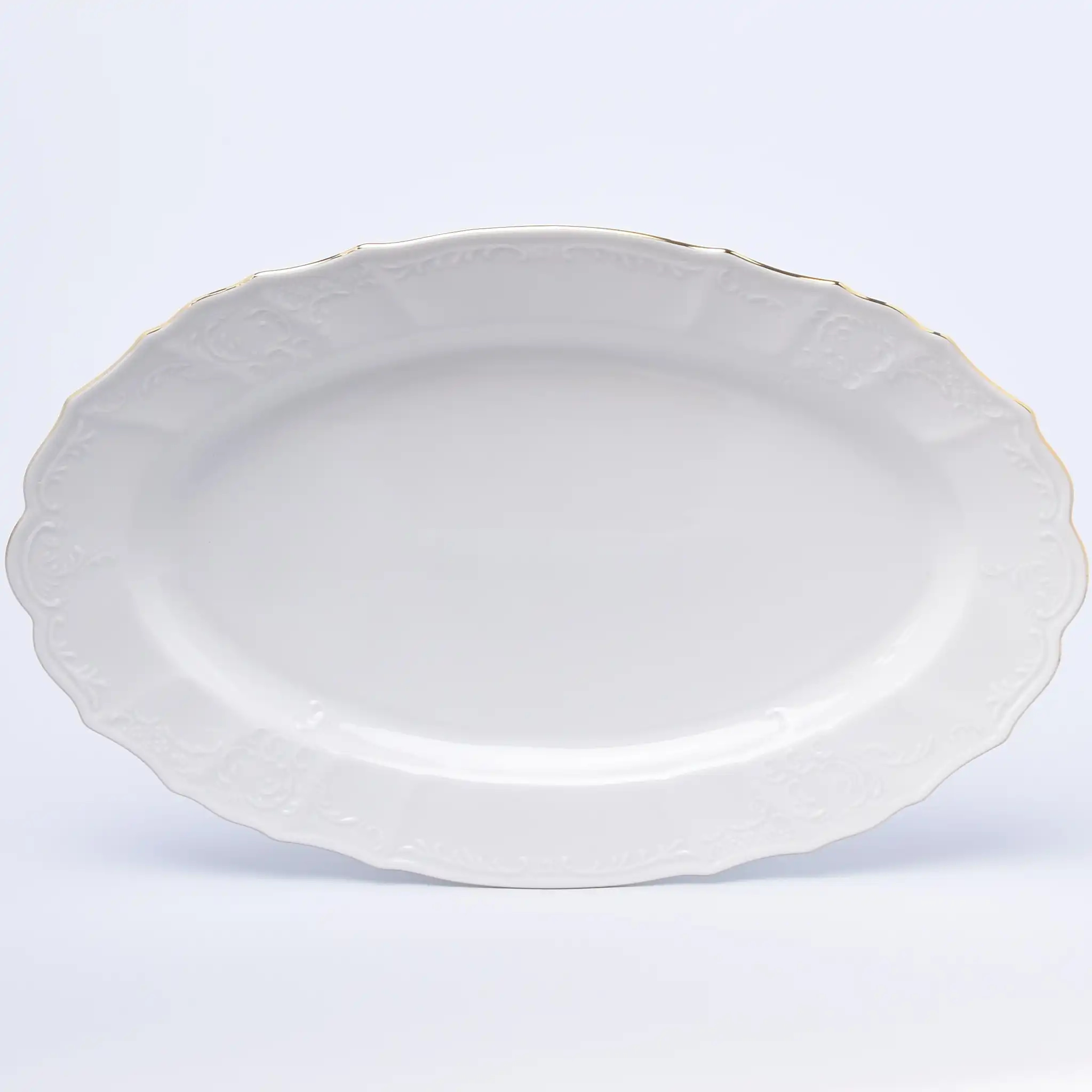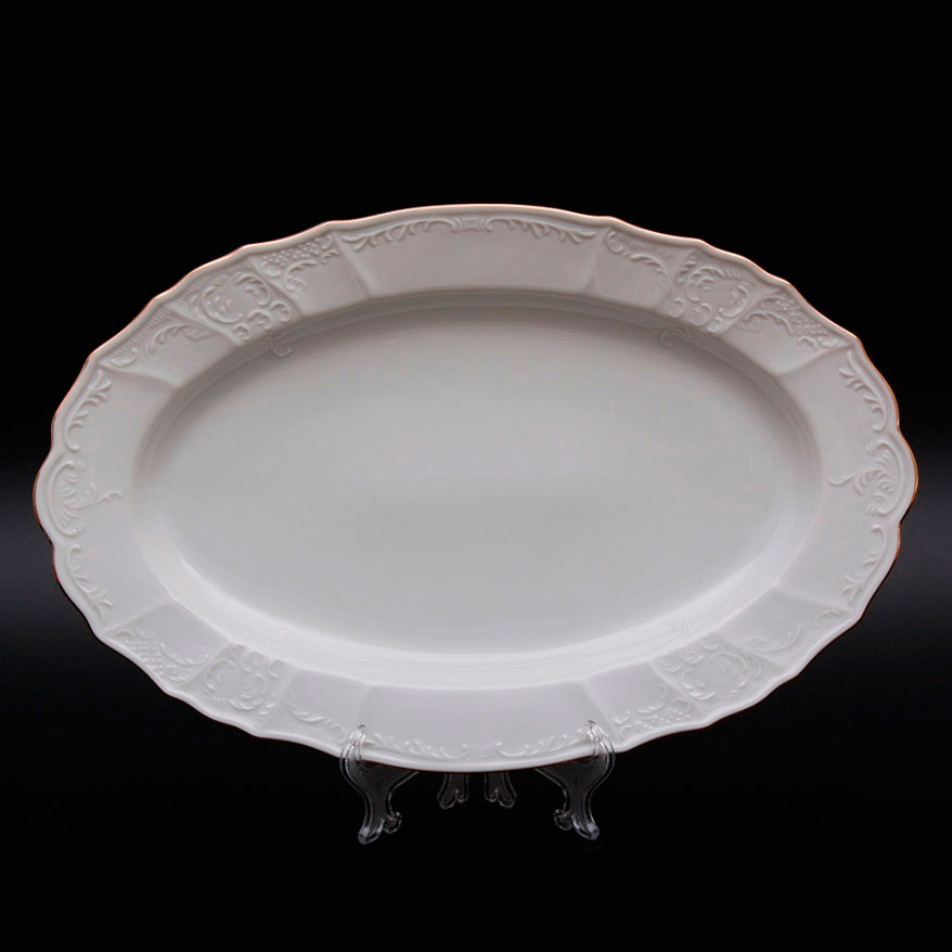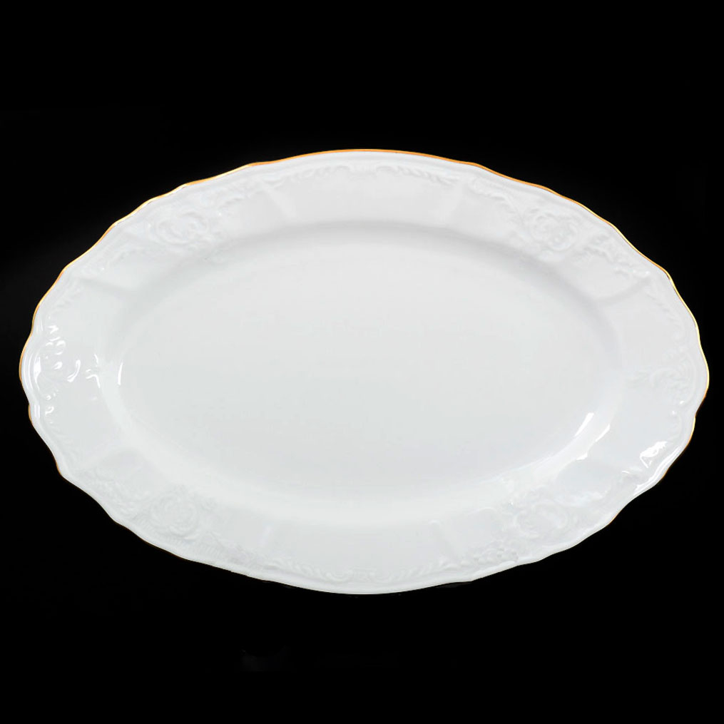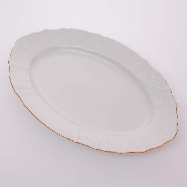 Блюдо фарфоровое овальное белое Thun Bernadotte Золотая Обводка 39 см с золотой оторочкой