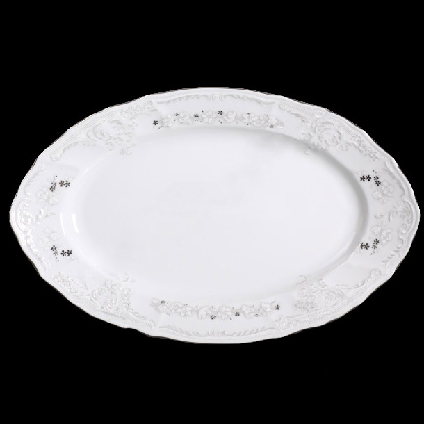 Блюдо фарфоровое овальное белого цвета с орнаментом Bernadotte Белые Вензели 34 см