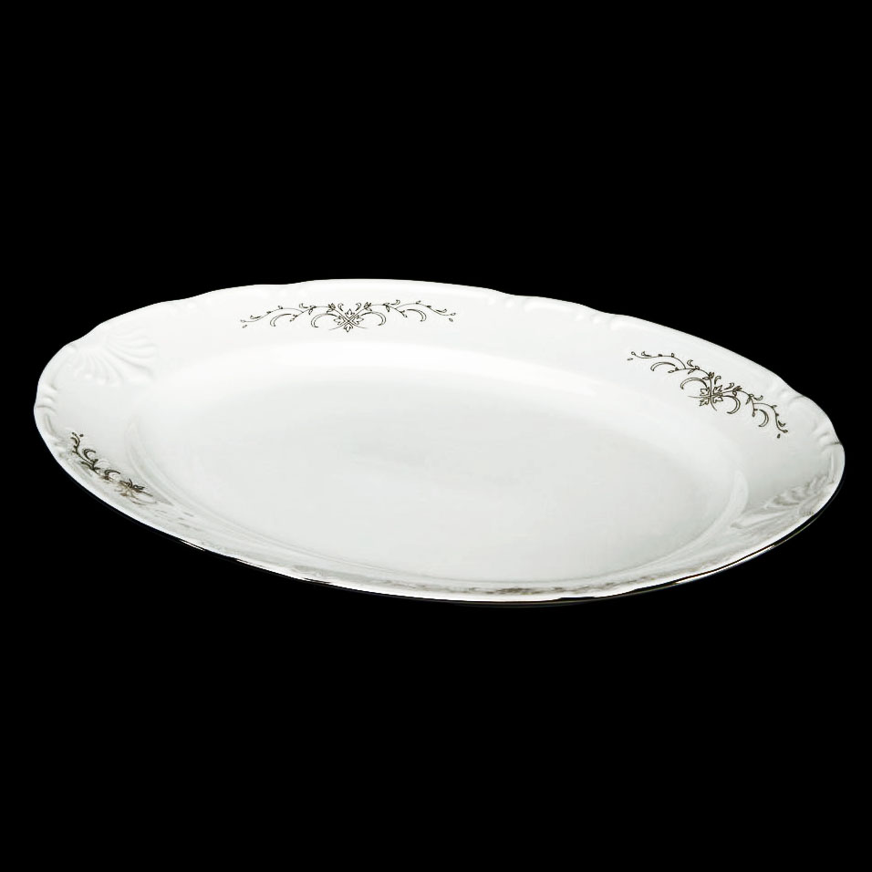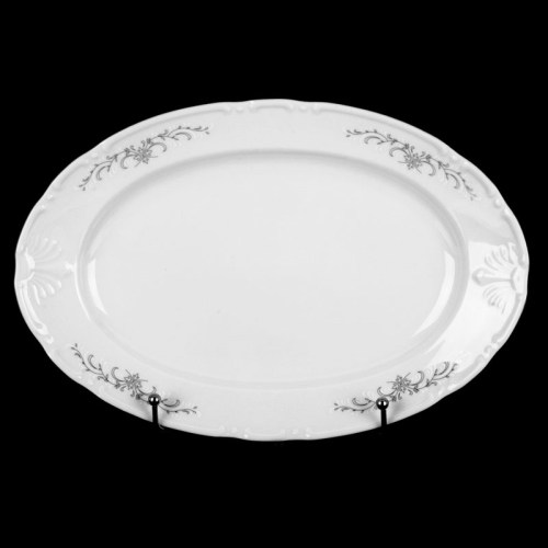 Блюдо фарфоровое овальное белого цвета с серым декором Thun Constance Серый орнамент 32 см