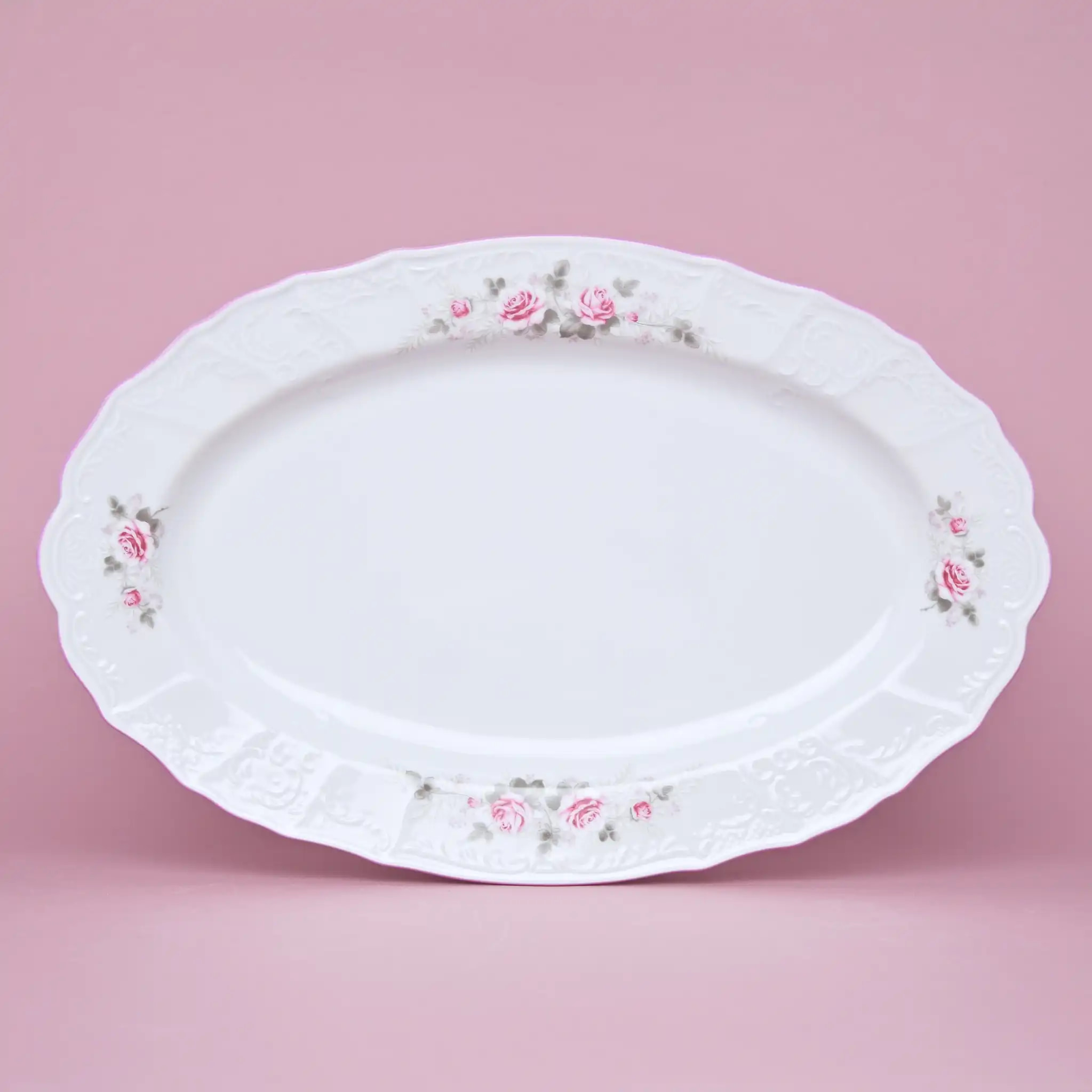 Блюдо фарфоровое овальное Bernadotte Бледные Розы 34 см с розовой каймой