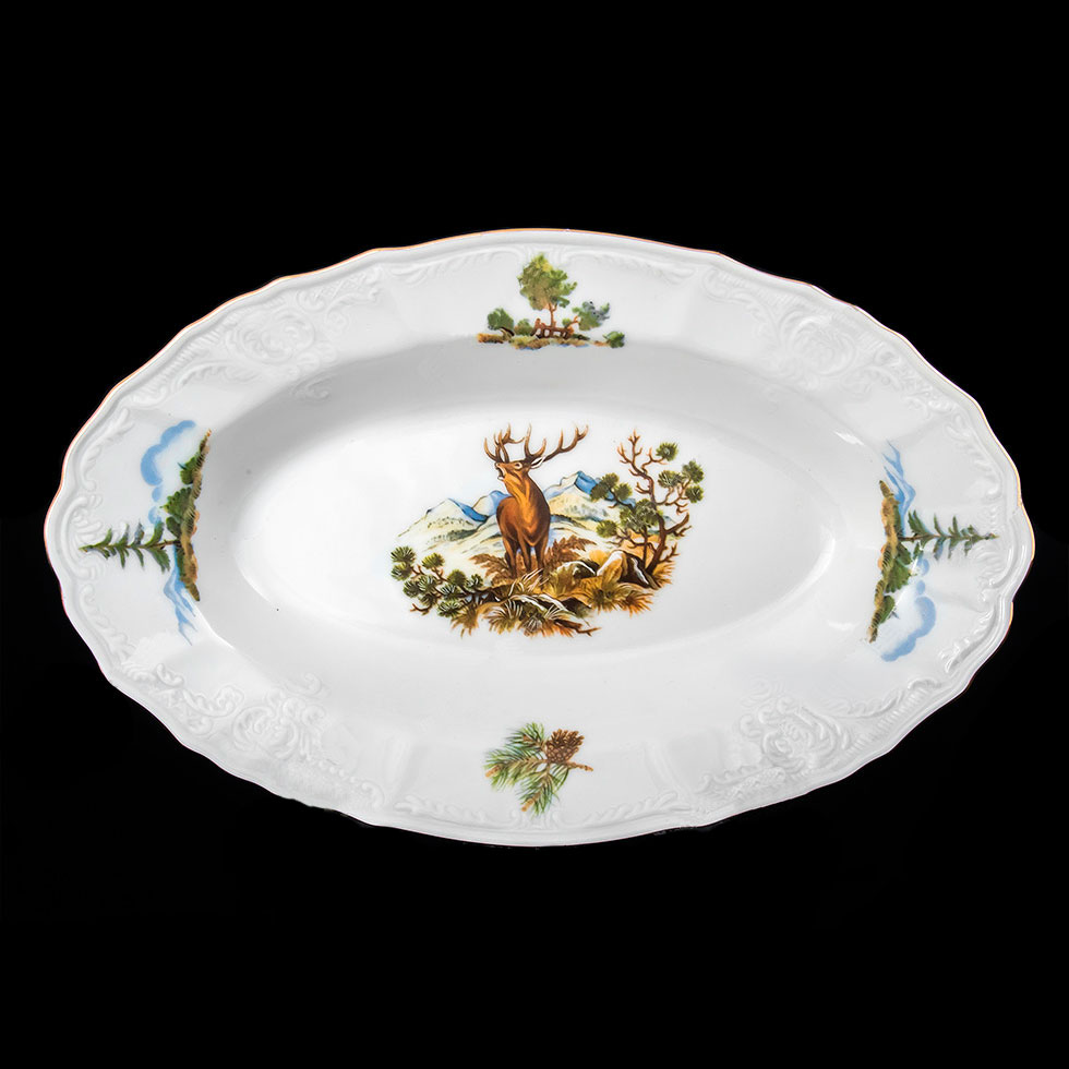 Погрузитесь в атмосферу изысканной старины с овальными блюдами Bernadotte — фарфоровыми произведениями искусства, которые рождаются в сердце Европы, в Чехии. Каждое из них будто несёт в себе дыхание охотничьих легенд, вдохновлённых старинной живописью. Центр композиции — яркое изображение лесных сцен, где грациозные животные словно оживают на фоне утончённого рельефа и белоснежного фарфора. Этот декор не только украшает, но и создаёт особое настроение — уютное, тёплое, с налётом европейской романтики.