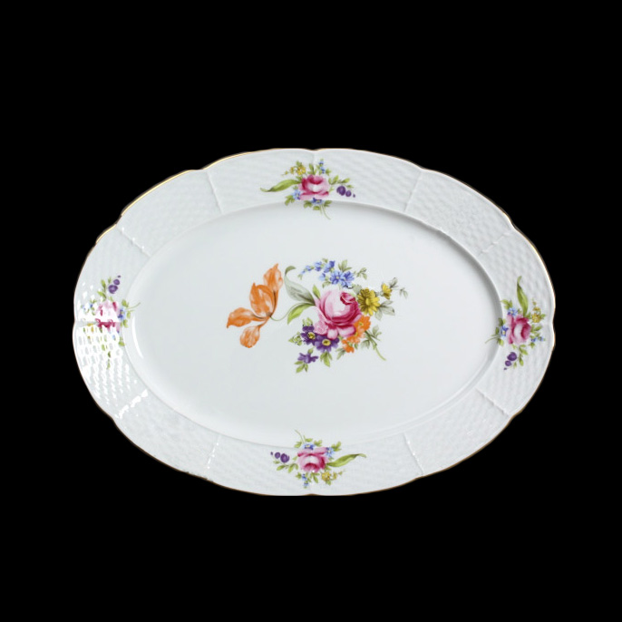Овальные блюда Thun Menuet — как фарфоровые полотна, на которых ваша кулинария превращается в искусство. Их изысканный декор в духе «Мейсенского букета» напоминает старинные ботанические иллюстрации: бархатные розы, нежные лилии и полевые цветы словно только что собраны в саду под утренним солнцем. Каждое блюдо — это не просто подача, а живая история вкуса и красоты.