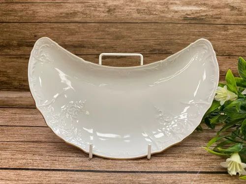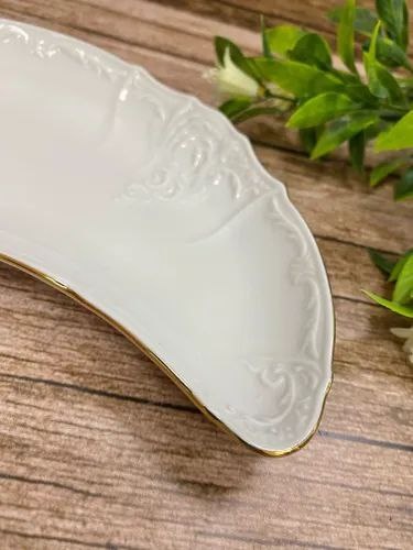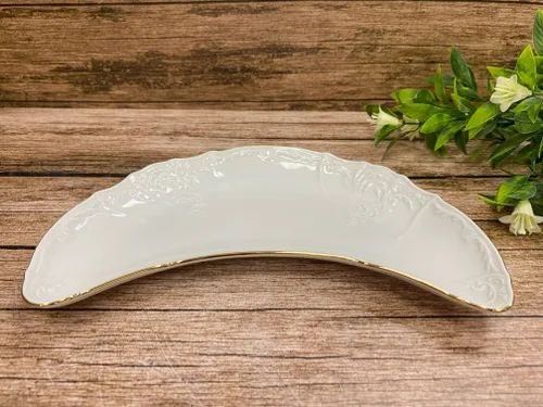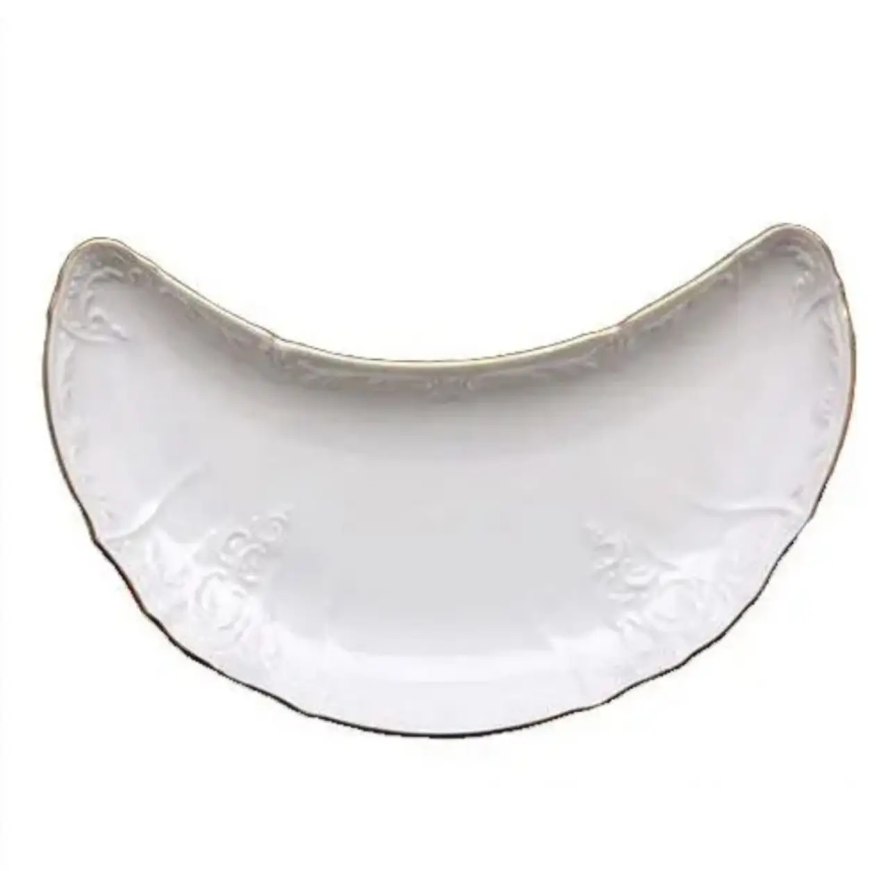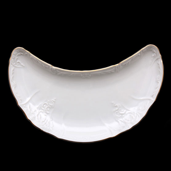 Блюдо фарфоровое "полумесяц" белое Thun Bernadotte Золотая Обводка 23x10 см с золотым кантом