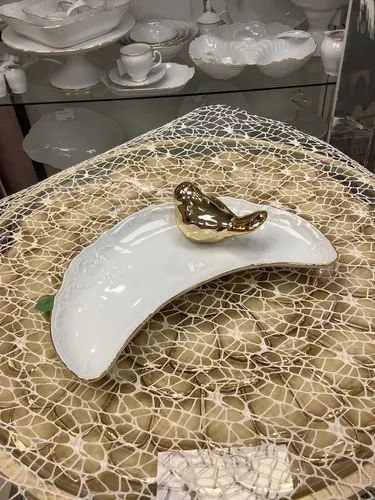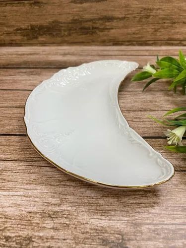 Блюдо в форме полумесяца (23×10 см) — оригинальный акцент на вашем столе. Оно идеально подойдёт для подачи лимона, сыра, маслин, мини-десертов или как подставка под рюмки. Элегантная форма "полумесяц" делает его универсальным компаньоном к чайным и десертным сервизам.