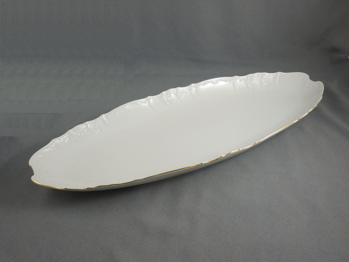 Блюдо фарфоровое рыбное белое Thun Bernadotte Золотая Обводка 52 см с золотой оторочкой