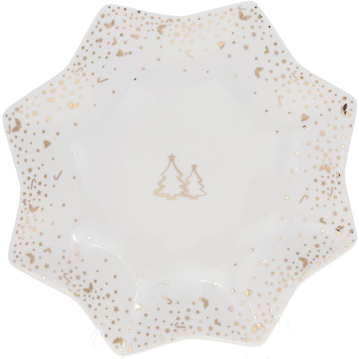 Блюдо виготовлено з білої порцеляни із стійким декором новорічної тематики. Різдвяне блюдо упаковане в кольорову подарункову коробку і стане чудовим подарунком до Різдвяних свят або до Нового Року.