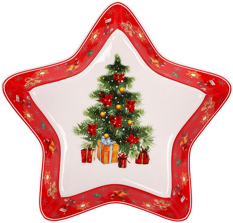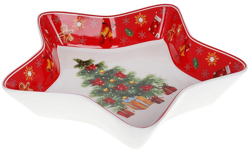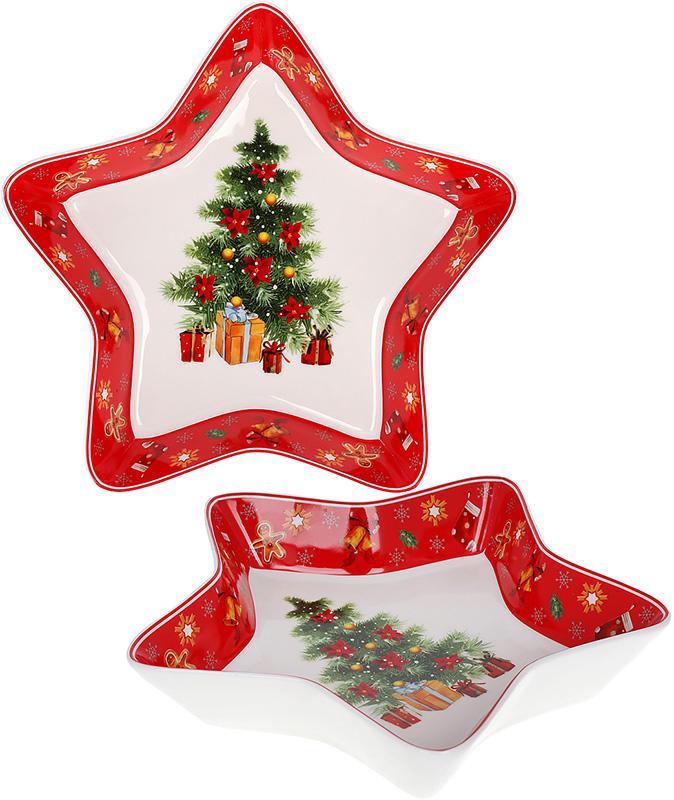 Блюдо фарфорове у формі зірки Ялинки 28 см червоне