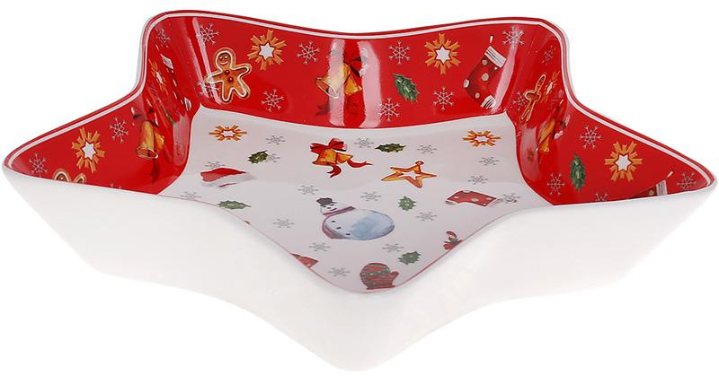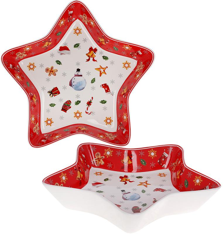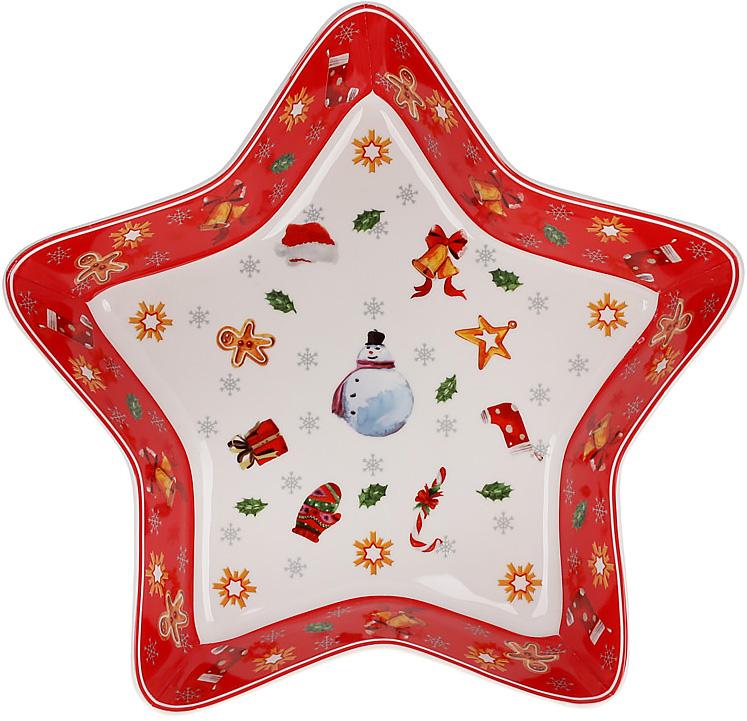Блюдо фарфоровое в форме звезды Снеговик 28 см