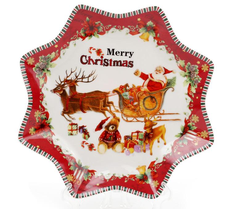 Блюдо фарфоровое звездочка "С рождеством" 20,5 см